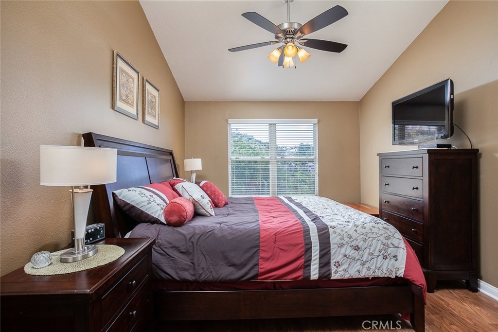 Welcome to the prestigious community of Summit Court in Anaheim Hills. This is the home you have been looking for... Great location with an amazing Panoramic View and Yard! Everything you want in a home and more, Main floor Bedroom, Dual Master Bedrooms upstairs each with their own private bathrooms that are upgraded with granite counter tops and custom cabinets in the closets, Spacious Open Floor Plan with New Laminate Wood Flooring, Floor to wall windows with custom window coverings, designer Kitchen with amply cabinet space, granite counter tops, stainless steel appliances, built in wine refrigerator and breakfast bar. The backyard is perfect for entertaining, large enough for a spa, bbq island or just sit and enjoy the amazing view and gorgeous sunsets. Your new home really has it all, including a 2 car attached garage, separate laundry room and walking distance to the community Pool, Gym and Spa!! Come see all the wonderful amenities that await you!