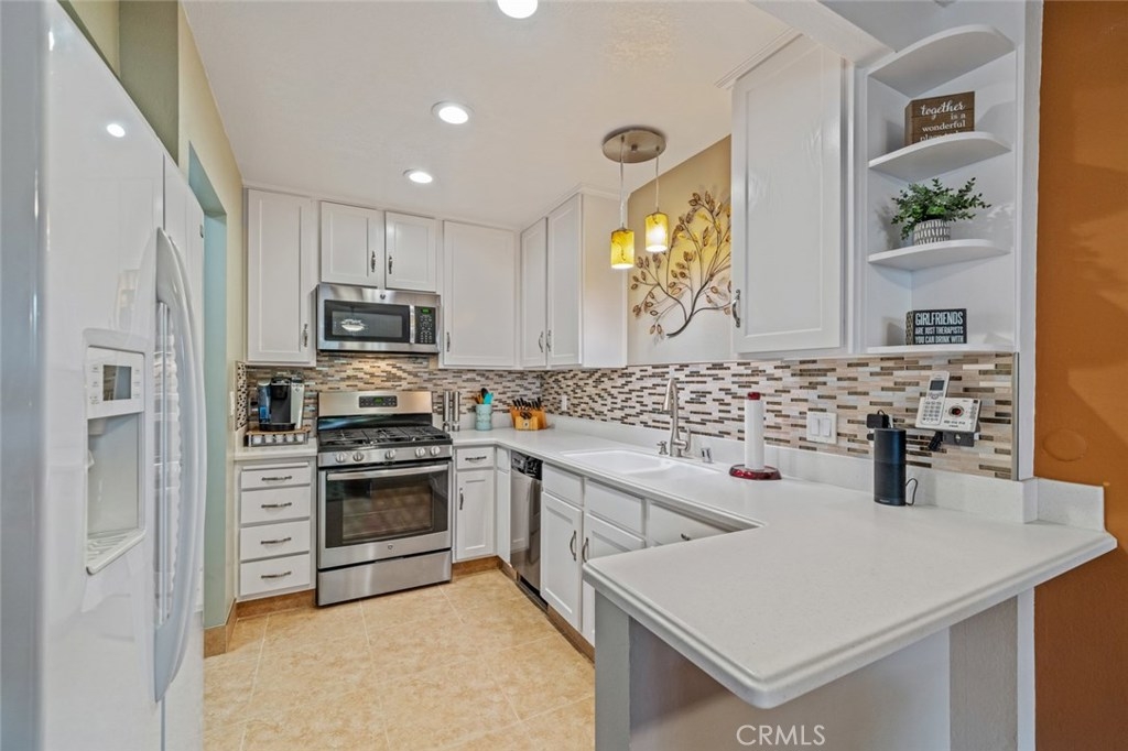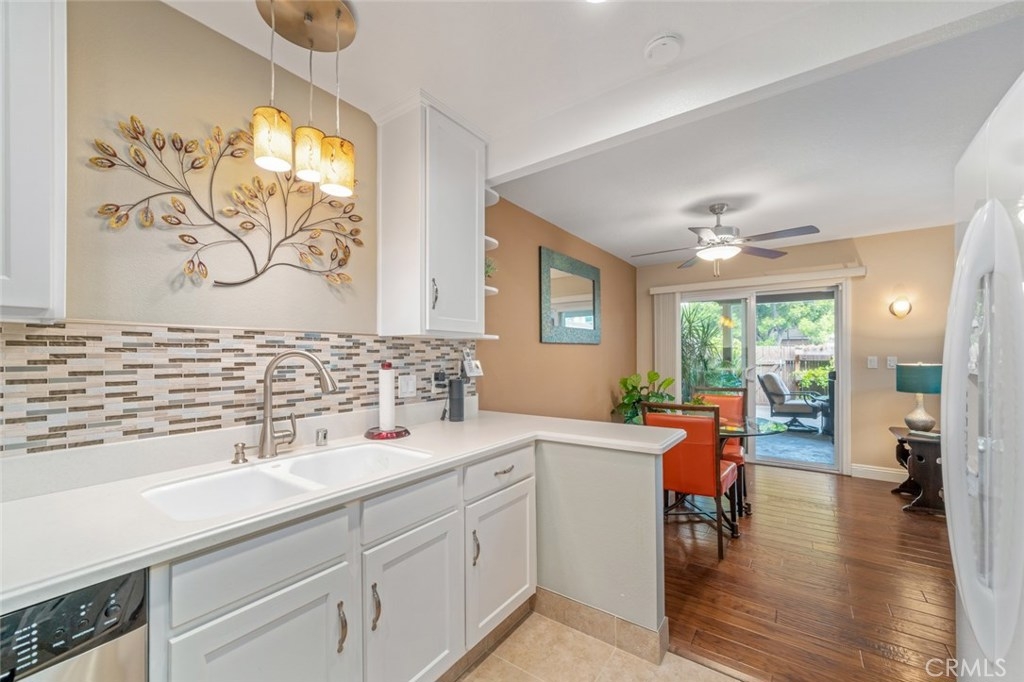 Come make yourself at home inside this beautifully remodeled turnkey townhome. This 2 bedroom 1.5 bath in the desirable Rancho Yorba Community in Anaheim Hills. Main floor kitchen has Corian counter tops and stainless steel appliances and is open to the dining area and family room. The refrigerator and stackable washer and dryer are included. Inside laundry with half bath adjacent to the kitchen. The home has been upgraded with double pane windows, built in storage options, granite bathroom countertops, ceramic tile in shower/kitchen/bath, custom closet by Closet World in master bedroom and distressed engineered hardwood floors throughout. 2 bedrooms and one full bathroom upstairs. Patio has been completely redone with a Alumawood patio cover, recessed lighting, ceiling fan and stamped concrete. Unit has 2 car attached garage and guest parking. Rancho Yorba's association has park like grounds, two swimming pools and clubhouse. Easy access to freeways, shopping, and award winning schools. Don't miss this one!!