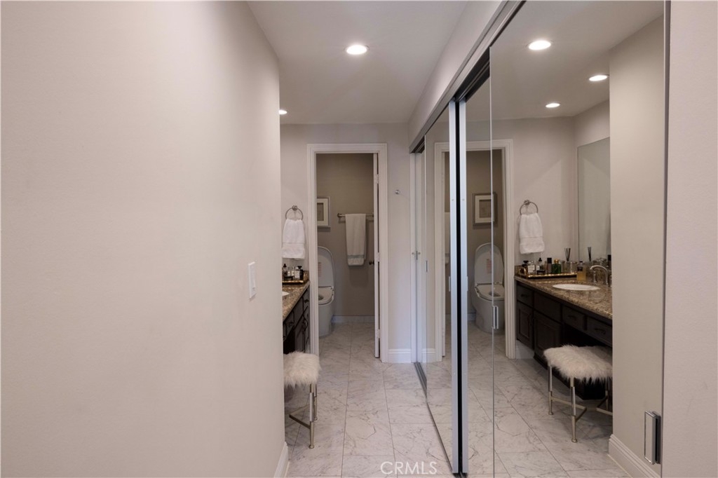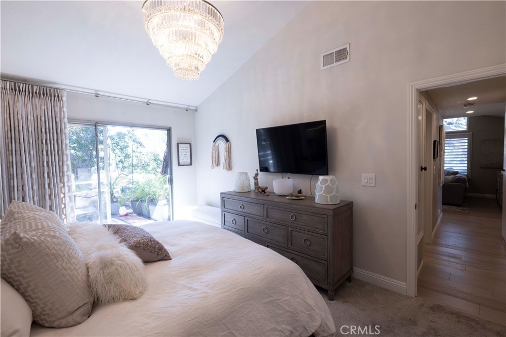 Situated within walking distance of local shopping, restaurants, and schools, this end-unit single level condo highlights pride of ownership. Prior to entry, an open courtyard welcomes all your guests with ample sunshine and greenery to brighten up your summer BBQ's. Upon entry, natural light floods the vaulted ceiling and open living room complete with a gas starter fireplace for a cozy evening. Right around the corner, step into the granite counter kitchen, adjacent eating area, and breakfast bar. Retreat to your generously sized master suite with a spacious granite counter sink, shower, and over sized his-and-her closet. Enjoy a cup of morning coffee on the master patio just outside the master bedroom overlooking the trees and hills. A second well-situated bedroom sits off the living room along with a second full bath just across the hall to round out the layout of this home. With the attached two car garage including a full wall of built-in cabinet storage and washer dryer hook ups as well as amenities including two pools and two Jacuzzi's in the community, this condo offers a rare opportunity in North Orange County.