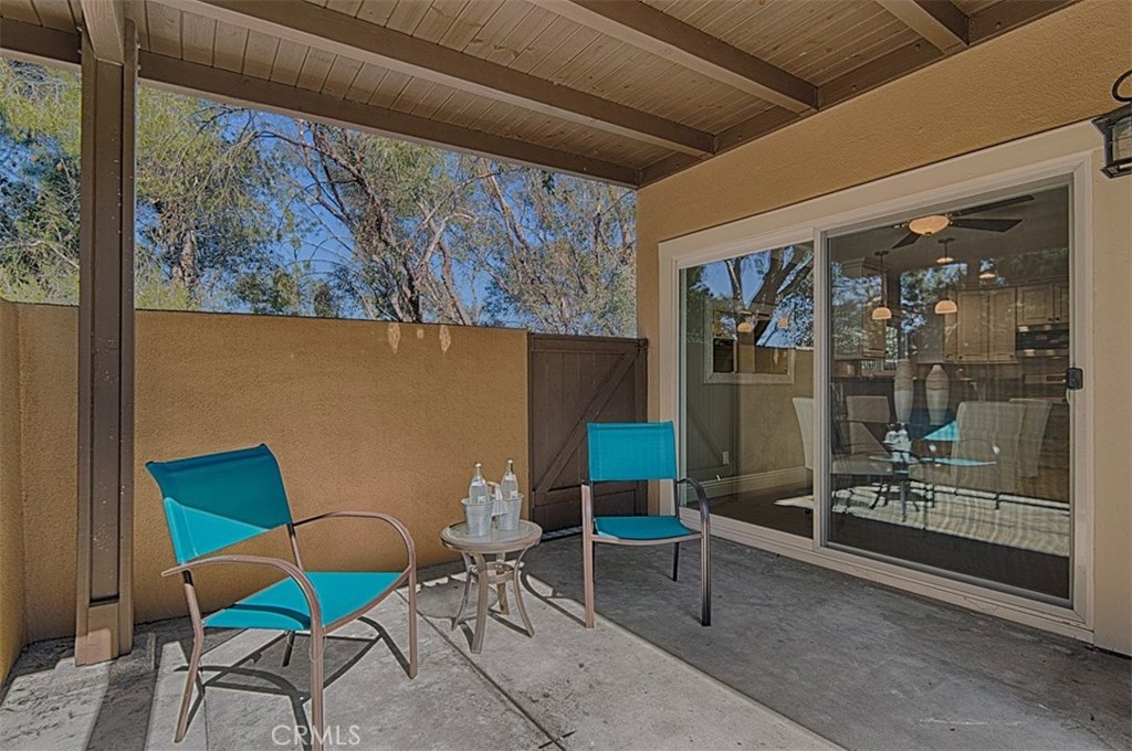 This highly sought-after end unit is the largest in the well-manicured Laurelwood community, w/no one behind you. Walk into an open concept floor plan w/two story ceilings in the light & bright living room w/recessed lighting, large white crown molding & baseboards, a gorgeous gas starter fireplace w/hearth & mantle which leads to the formal dining room. Both the dining & living rooms have large glass sliders to the relaxing, private backyard covered patio w/views of mature trees. Beautifully remodeled kitchen has lots of white, soft close cabinets & drawers, rich granite counter tops, stainless steel appliances, recessed lighting, a generous counter bar for seating, & a window over the sink. The downstairs bedroom is currently being used as an office & has a full wall of built in cabinets. The downstairs full bath has white cabinetry & granite countertop. The roomy master suite has a double door entrance, lush carpet, a huge walk in closet w/mirrored doors, & is attached to the spacious, light & bright bath w/rich dark cabinets & dual sinks, white quartz countertop & a linen closet. The second upstairs bedroom has a full-size bath & mirrored closet doors. Plantation shutters, lighted ceiling fans, large crown molding & baseboards; laundry room w/cabinets, an attached two car garage w/epoxy flooring & loads of storage round out this great property. The HOA has 2 pools & spas and generous amounts of guest parking. Private Showings Available.