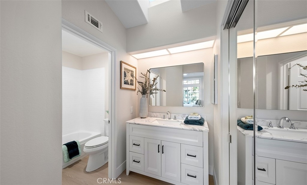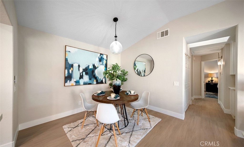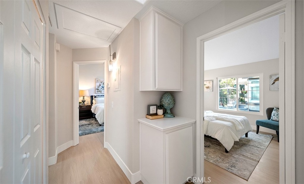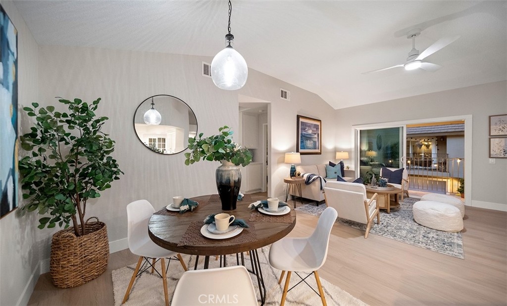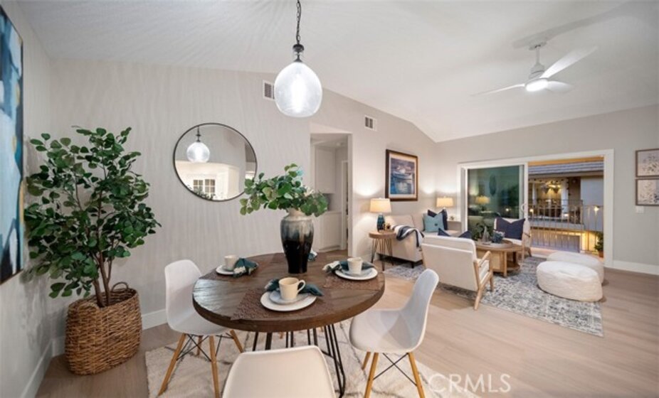 Tucked into one of Anaheim Hills’ most inviting communities, 411 S. Rosemary Lane feels like a place where life instantly slows down. This bright, airy upstairs end unit welcomes you with a sense of openness from the moment you step inside. Vaulted ceilings stretch overhead, natural light pours through the brand new windows, and the single level layout creates an easy, comfortable flow. The living spaces feel warm and connected. A cozy stacked stone fireplace anchors the living room, while new sliding doors invite the outdoors in and open to a private balcony, perfect for morning coffee, fresh air, or winding down at the end of the day. The kitchen is crisp and cheerful, finished with stainless steel appliances, white cabinets, quartz countertops, subway tile and positioned to stay connected to the rest of the home, making everyday living and entertaining feel effortless. The primary suite offers a peaceful retreat of its own, complete with a private en suite bath which has been completely remodeled with quartz counters and new cabinets. A second bedroom and bath add flexibility for guests, a home office, or whatever the next chapter calls for. In unit laundry, ceiling fans, and a 2 car garage add comfort and convenience to daily life. Outside your door, Laurelwood at Sycamore Canyon offers the kind of setting buyers are always hoping to find. Pools, spas, and walking paths create a relaxed community feel, while nearby restaurants, cafes, shopping, and groceries keep everything close at hand. Sycamore Park and its playground are just around the corner, adding even more charm to the location. This is a home that feels tucked away, peaceful, and connected all at once. A bright and welcoming Anaheim Hills retreat in a community people love to call home.