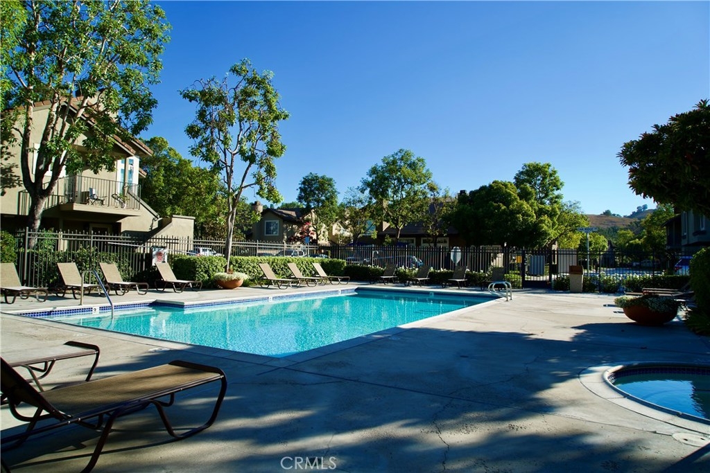 Highly sought after condo in Laurelwood in Anaheim Hills, well maintained, 2 bedroom/2 bath overlooking the pool. This wonderful end unit has a master bedroom with en suite bathroom and a small patio off the master. There is wood flooring throughout the main living areas and carpet in both of the bedrooms. There are wooden shutters on most windows which can be opened allowing in plenty of light. The laundry area is inside the condo and comes with a washer and dryer. The front entry patio is large and has plenty of room for a BBQ. Directly below the condo is a large two car garage. There are two pools and spas in this development along with numerous guest parking spaces. Laurelwood is highly maintained and is close to shopping, dining, parks, hiking trails, golf and award winning schools.