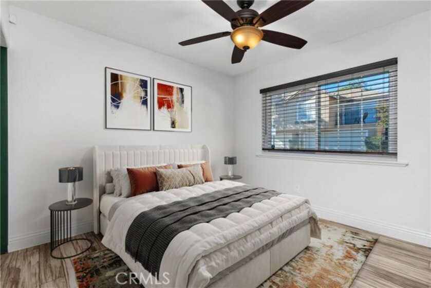 Welcome to the Laurelwood Community, where comfort, style, and a touch of “finally, a place that checks all the boxes” come together. This beautifully upgraded 3-bedroom, 3-bathroom end-unit townhome offers 1,615 square feet of smartly designed living space, starting with the wood-look tile flooring that spans the entire first level. The kitchen delivers on both form and function with quartz counters, ample cabinetry, and stainless steel appliances—because yes, you can have good taste and good storage at the same time. A main-floor bedroom and full bath offer ideal flexibility for guests, in-laws, or that home office you swear you’re going to use. Upstairs, you’ll find two spacious en suite bedrooms, including a remodeled primary suite featuring dual sinks, a cedar-lined walk-in closet, and a walk-in shower that basically begs you to linger. Fresh brand-new carpet keeps the second floor feeling plush, while the enclosed patio out back is perfect for relaxing or squeezing in some outdoor time without leaving home. Located at the quiet rear portion of the community with ample guest parking, this home also enjoys access to two sparkling community pools and spas, because California living just hits different with options. Top it off with a 2-car attached garage, inside laundry room and walk-ability to restaurants, grocery stores, and other destinations and you’ve got a turnkey home that blends convenience, comfort, and elevated style in all the right ways.