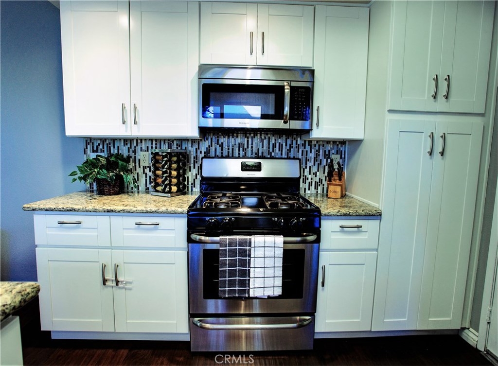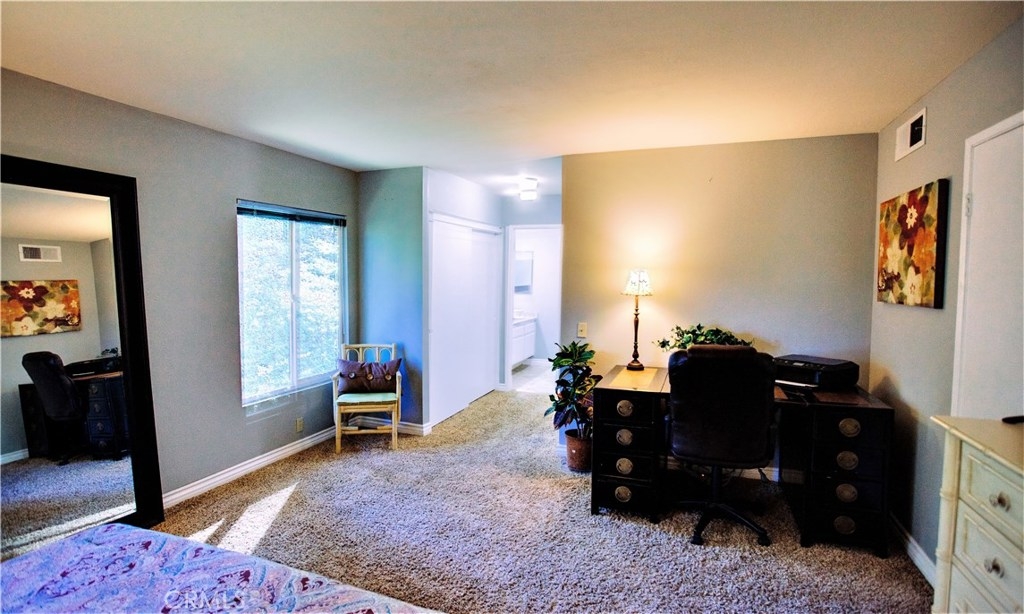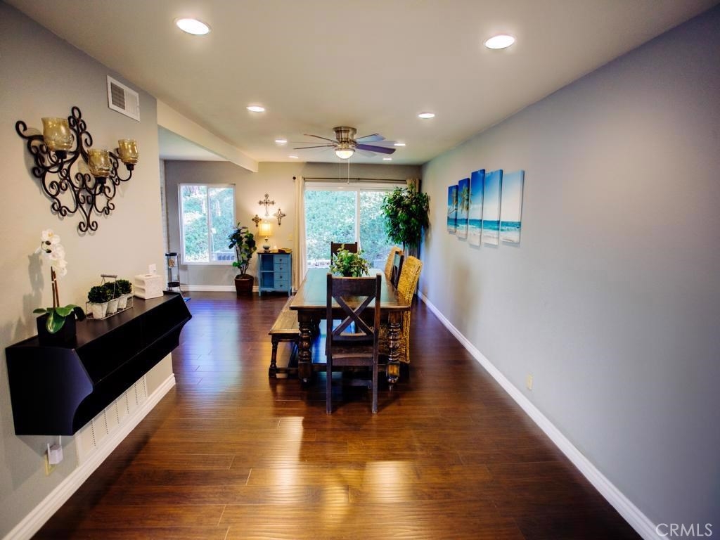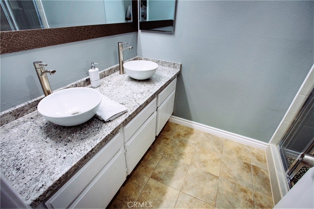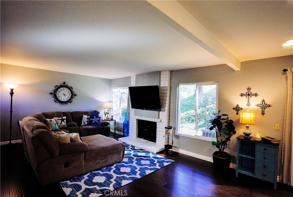 PRICED TO SELL! UPGRADED PRIVATE, QUIET OPEN FLOOR PLAN CORNER UNIT in Anaheim Hills 2 bdrm, 3 bath, 2 story townhouse nestled among trees w/ VIEWS of CITY LIGHTS, HILLS, TREES and MOUNTAINS. LARGE FRONT PRIVATE PATIO with Herringbone brick great for barbecuing & entertaining. NATURE LOVERS, THIS IS THE ONE FOR YOU! Upgraded dual pane windows in living room with wide plank dark laminate hardwood floors downstairs, brick gas fireplace for those wintry nights, freshly painted in gray tones, remodeled half bath downstairs with new tile floor, new vanity, new granite counter, new mirror, new light fixture. Entertain guests in the extra large dining area with new remote controlled ceiling fan -- large enough for a formal dining table. Dual pane sliders lead to greenbelt area where you can sit & enjoy the LUSCIOUS TREES and VIEWS. Upgraded kitchen with white shaker cabinets, granite counter tops, crown molding, recess lights, newer stainless steel appliances with trees view from kitchen window. TWO MASTER BEDROOMS w/ ensuite bathrooms. BOTH MASTER BEDROOMS HAVE VIEWS! Larger master has dual closets. Remodeled master bath has a new custom mirror, new tile floor, new dual bowl sinks, new Formica counter (looks like granite) new hardware, walk-in shower with custom tile work. SECOND MASTER bedroom has city lights view, upgraded vanity w/ large bowl sink, new tile floor, new mirror & Formica counter. Views from floor to ceiling window brings in NATURAL LIGHTING. Great location!