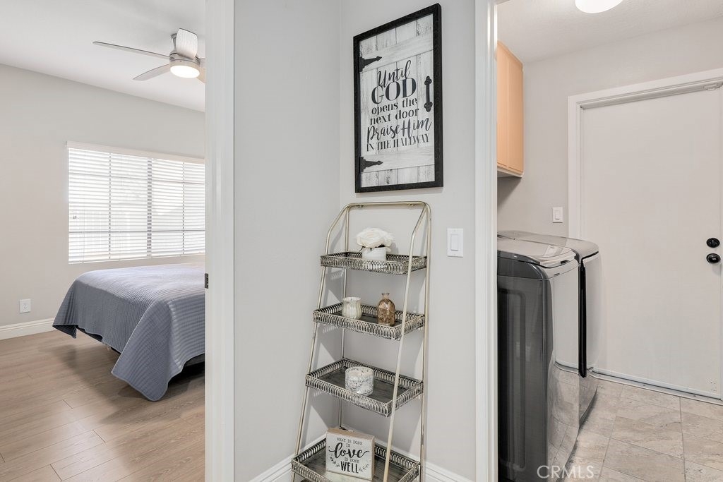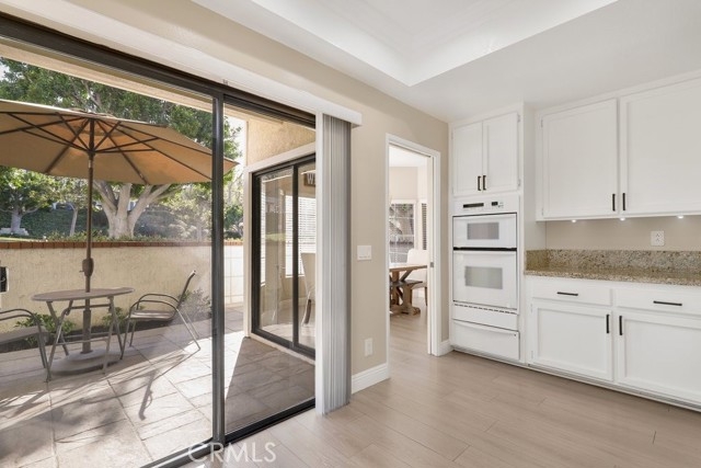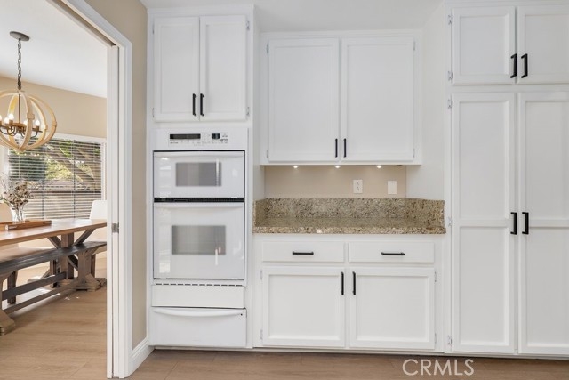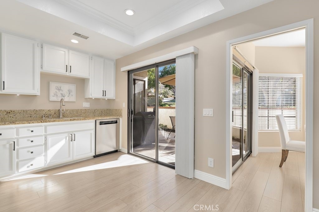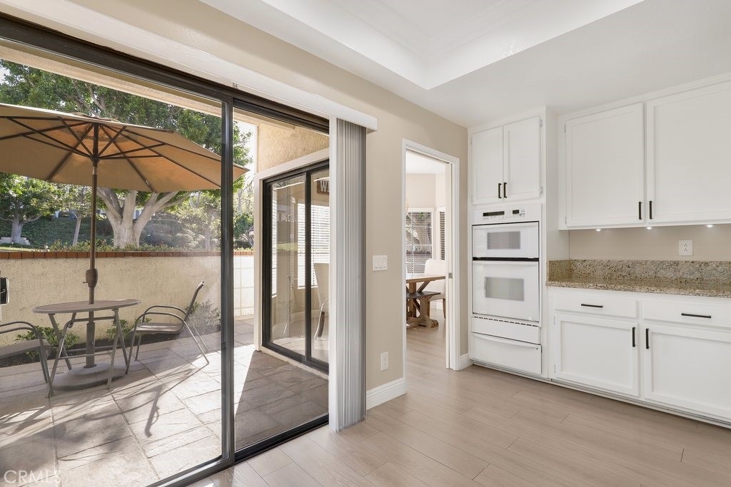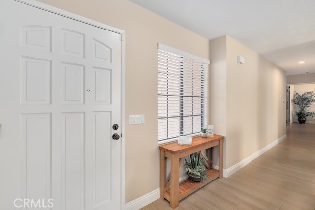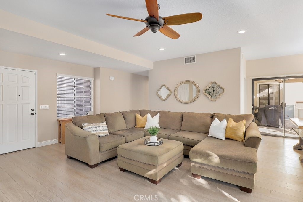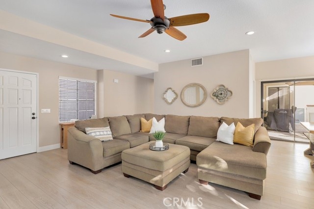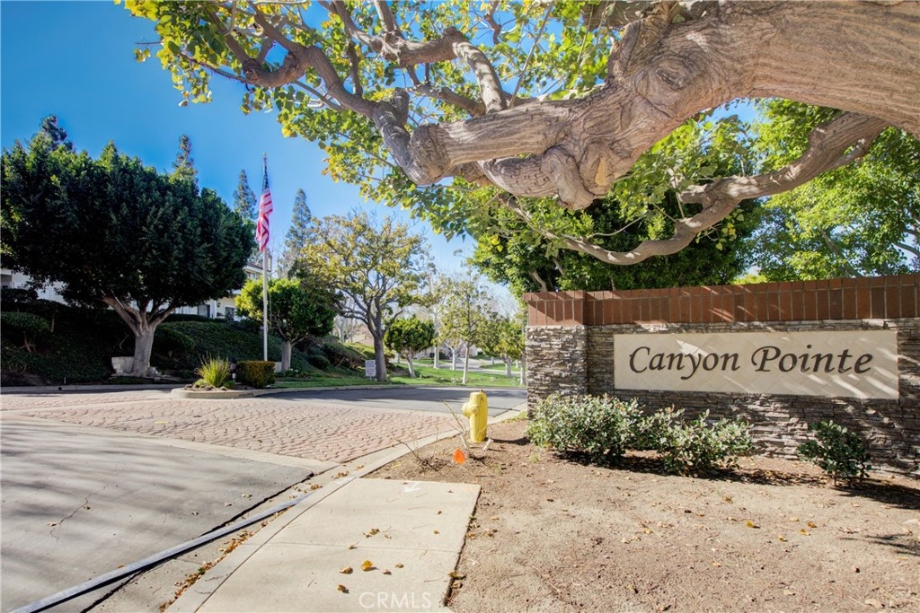 Beautifully upgraded, lower level home in the Canyon Pointe gated community. This peaceful, gated community offers wide-open spaces with greenbelts, mature trees and plenty of guest parking. The front courtyard is inviting and relaxing, complete with pavers, artificial turf and a cheerful flowerbed providing a private place to relax. As you enter the home, you’re greeted by walls of windows bringing the outdoors inside. The living room boasts neutral paint, newer LVP flooring, recessed lighting, a ceiling fan and cozy fireplace. The breakfast nook is just off the living room bringing in the natural light leading directly to the kitchen featuring an abundance of fresh white cabinetry with pull outs, granite counters, recessed lighting, a 5 burner gas stovetop, warming tray, and white appliances. Inside laundry room is down the hall away from master bedroom and main living area. Down the hallway, you enter the very large master bedroom with LVP flooring, fresh paint, recessed lighting and a ceiling fan. Entering the primary bath area which is made private with a custom barn door, your walk in closet is complete with built-in organizers. The bathroom has been remodeled including a dual sink vanity, flooring, lighting, a walk in shower with marble-like tile surround and hexagon flooring, dual shower heads and glass doors. The secondary bedroom is very spacious and also has LVP flooring, a ceiling fan and built in closet organizer in the walk in closet. The guest bathroom is also upgraded with a vanity, flooring, fixtures and lighting. Inside laundry room is down the hall away from master bedroom and main living area. The direct access, 2-car garage has overhead storage and houses the newer water heater. The two backyard patio areas are perfect for entertaining and have been beautifully landscaped with pavers and a border flowerbed. Take a short walk with your chairs to the perimeter of the development and enjoy the breathtaking city light and mountain views! HOA amenities include: Pool and Spa; earthquake insurance, homeowners insurance for the structure, the cover everything outside the walls, and new Pex piping installed throughout the complex in 2017. Located a short distance to the 91 frwy, 55 frwy and 241/261 Toll Roads, minutes to shopping and entertainment, the Yorba Regional Park, Santiago Oaks, Yorba Linda/Chino Hills trails, Oak Canyon Nature Center, and the Walnut Canyon Reservoir.