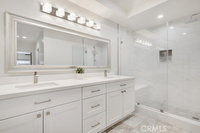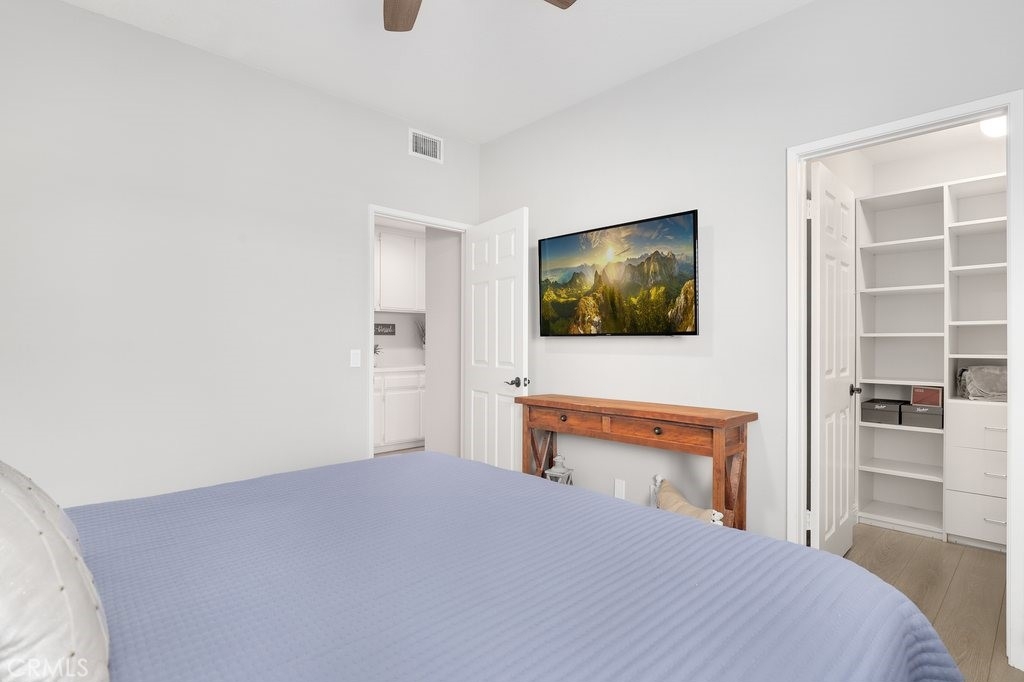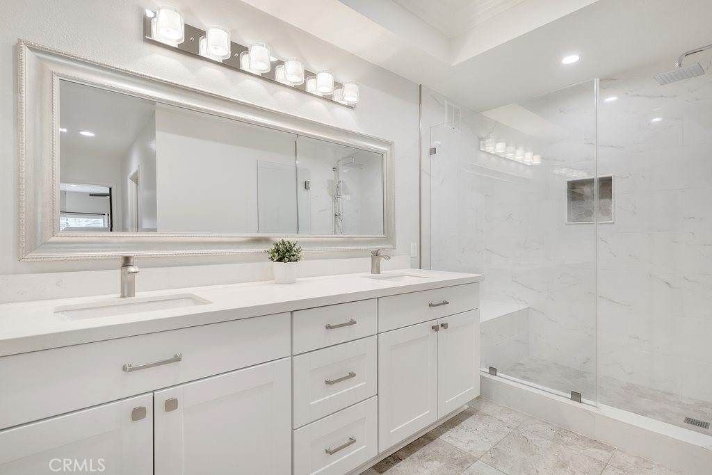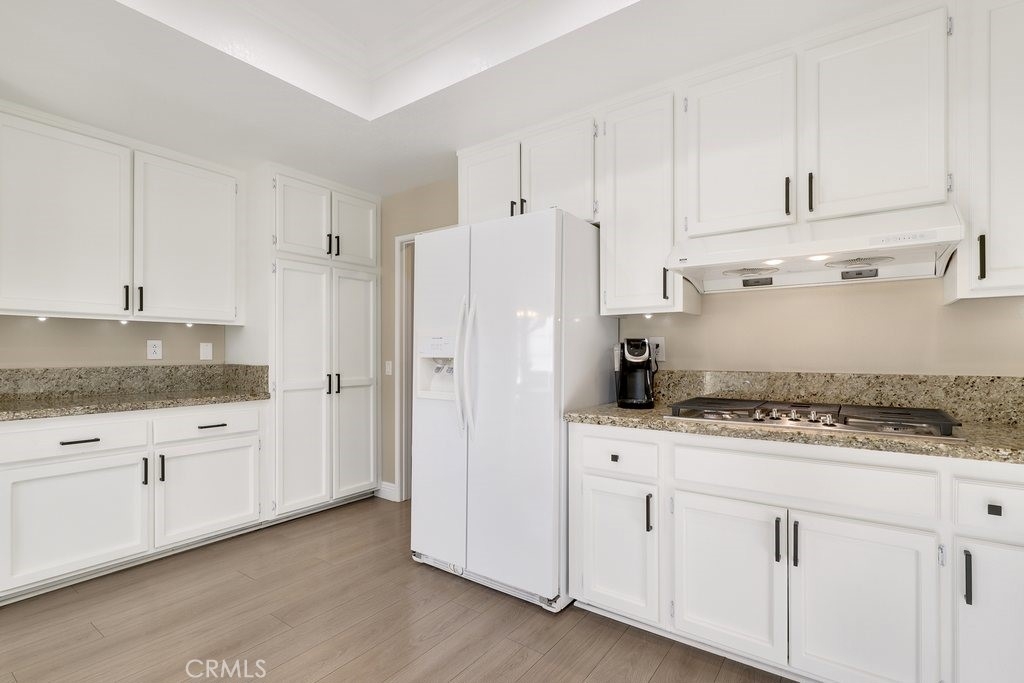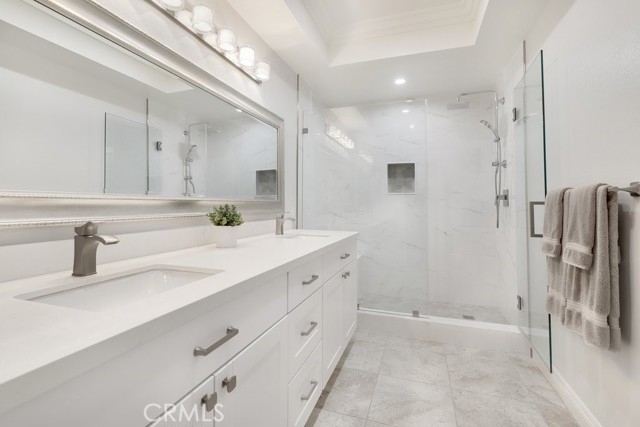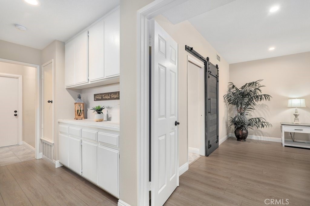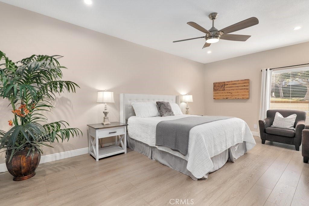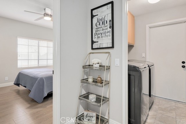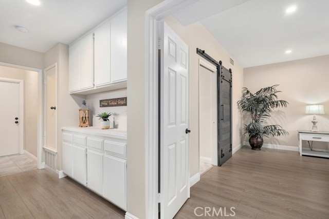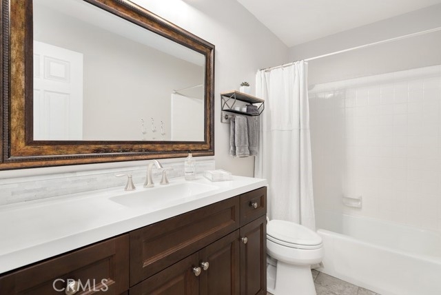 Beautifully upgraded, lower level home in the Canyon Pointe gated community. This peaceful, gated community offers wide-open spaces with greenbelts, mature trees and plenty of guest parking. The front courtyard is inviting and relaxing, complete with pavers, artificial turf and a cheerful flowerbed providing a private place to relax. As you enter the home, you’re greeted by walls of windows bringing the outdoors inside. The living room boasts neutral paint, newer LVP flooring, recessed lighting, a ceiling fan and cozy fireplace. The breakfast nook is just off the living room bringing in the natural light leading directly to the kitchen featuring an abundance of fresh white cabinetry with pull outs, granite counters, recessed lighting, a 5 burner gas stovetop, warming tray, and white appliances. Inside laundry room is down the hall away from master bedroom and main living area. Down the hallway, you enter the very large master bedroom with LVP flooring, fresh paint, recessed lighting and a ceiling fan. Entering the primary bath area which is made private with a custom barn door, your walk in closet is complete with built-in organizers. The bathroom has been remodeled including a dual sink vanity, flooring, lighting, a walk in shower with marble-like tile surround and hexagon flooring, dual shower heads and glass doors. The secondary bedroom is very spacious and also has LVP flooring, a ceiling fan and built in closet organizer in the walk in closet. The guest bathroom is also upgraded with a vanity, flooring, fixtures and lighting. Inside laundry room is down the hall away from master bedroom and main living area. The direct access, 2-car garage has overhead storage and houses the newer water heater. The two backyard patio areas are perfect for entertaining and have been beautifully landscaped with pavers and a border flowerbed. Take a short walk with your chairs to the perimeter of the development and enjoy the breathtaking city light and mountain views! HOA amenities include: Pool and Spa; earthquake insurance, homeowners insurance for the structure, the cover everything outside the walls, and new Pex piping installed throughout the complex in 2017. Located a short distance to the 91 frwy, 55 frwy and 241/261 Toll Roads, minutes to shopping and entertainment, the Yorba Regional Park, Santiago Oaks, Yorba Linda/Chino Hills trails, Oak Canyon Nature Center, and the Walnut Canyon Reservoir.