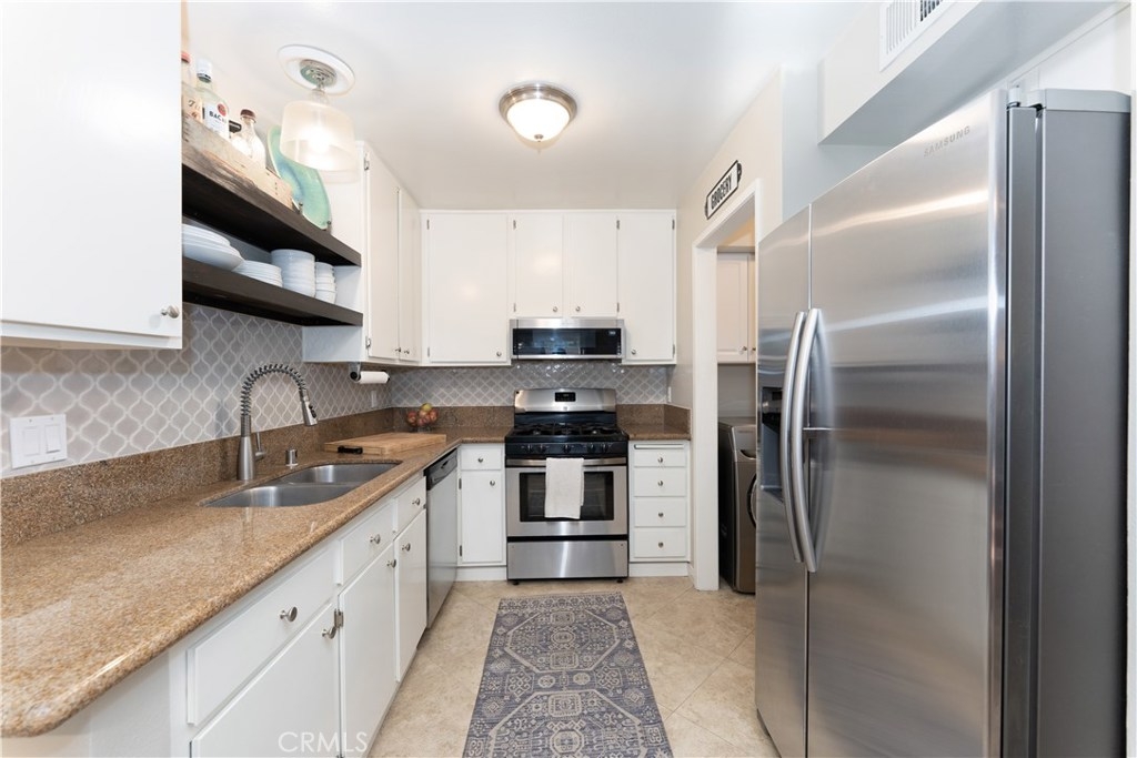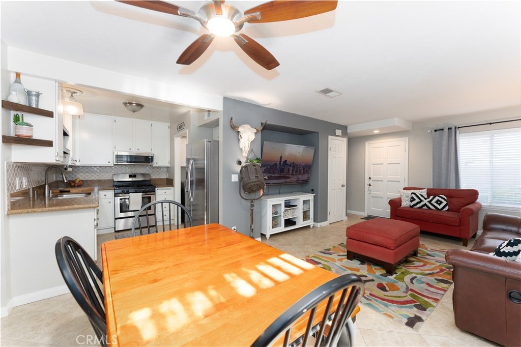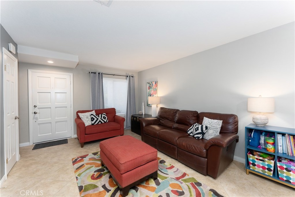 Come make yourself at home inside this turnkey, light-filled abode you'll want to call your own! The open floorplan is ready for those who like to both entertain and relax in, and anyone wanting easy-care living need look no further. There are 2 bedrooms and 1.5 baths, plus open-concept living and dining areas with a walkout to the covered and very private courtyard. The kitchen is well-equipped with stainless steel appliances, crisp white cabinetry, stylish backsplash, some open shelving above the double sink, and a separate laundry area with storage. Air-conditioning and ceiling fans ensure year-round comfort. This charming home is packed with extra features including easy-care tile floors, a tankless water heater, and a water softener. You'll have a Nest doorbell and thermostat to complete the impressive list of features. Just as impressive as this beautiful home is the amazing location with quick access to the 91, 55 and toll roads. You will live within a beautiful complex surrounded by lush gardens and with access to a community pool and spa. What more could you ask for? Come get a sneak peek while it's still available!
