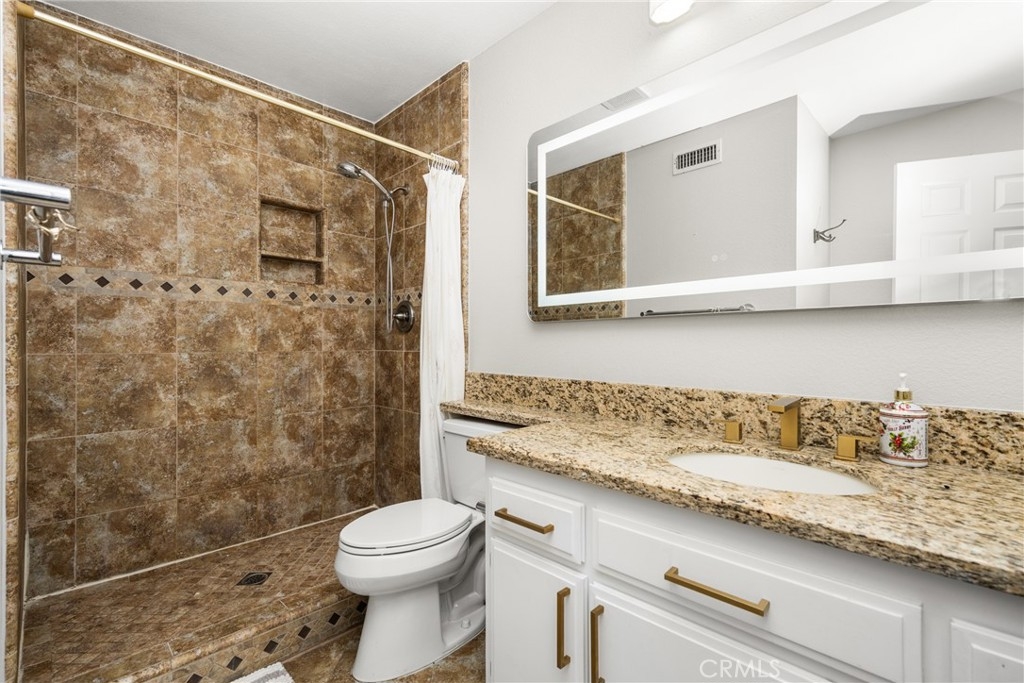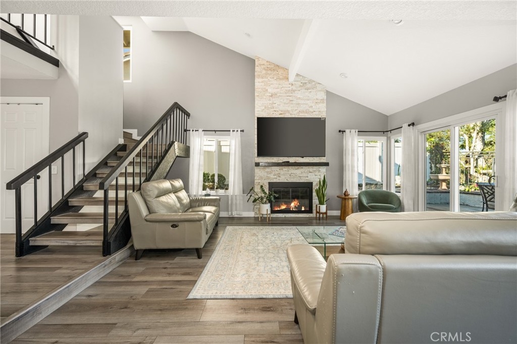 Welcome to 5889 E Mountain Loop Trail, a truly remarkable townhome nestled in the heart of Anaheim Hills. This stunning residence offers a perfect blend of comfort, style, and breathtaking views. With 3 bedrooms, 2.5 bathrooms, and 1,831 square feet of beautifully designed living space, this home provides an abundance of room for both relaxation and entertaining. Upon entering, you'll be immediately enchanted by the sweeping vistas that surround the home, creating a peaceful, serene atmosphere. The lower level features a chic remodeled half bath, complete with modern fixtures and elegant finishes. The kitchen is a chef’s dream, equipped with high-end Bosch appliances and gorgeous granite countertops. It opens effortlessly to the spacious family room, where soaring ceilings enhance the sense of openness and light. Whether you're cooking or hosting, this space is perfect for creating memorable moments. The inviting living room, with its sliding doors that lead to the backyard, offers an ideal spot to enjoy the stunning views. A formal dining room provides an elegant space for dinner parties or special celebrations, making entertaining a breeze. Upstairs, you’ll find two generously sized bedrooms that offer both comfort and privacy, sharing a sleek, well-appointed bathroom. The master suite is truly a retreat, featuring vaulted ceilings that elevate the room's airy feel, a relaxing soaking tub for unwinding, and dual sinks for added convenience. It’s the perfect sanctuary to escape and recharge after a busy day. Additional features of this exceptional home include a two-car garage for secure parking and extra storage, upgraded flooring throughout, and a newly installed HVAC system to keep you comfortable year-round. Located in the desirable Anaheim Hills, this townhome offers easy access to shopping, dining, parks, and recreational amenities, ensuring that everything you need is right at your doorstep. Don’t miss out on the opportunity to make 5889 E Mountain Loop Trail your new home – a place where comfort meets style in a tranquil, picturesque setting.