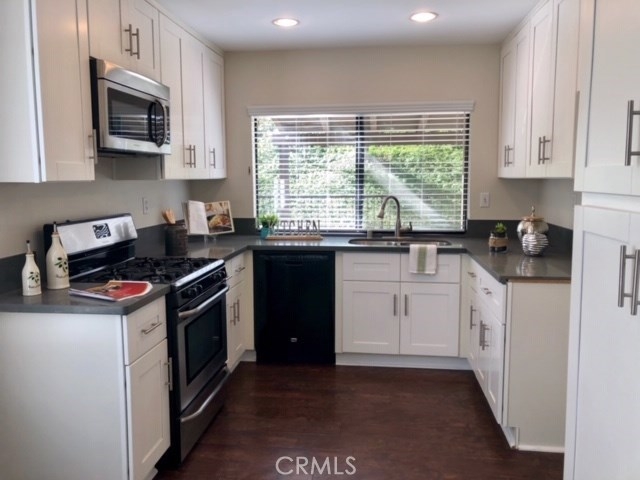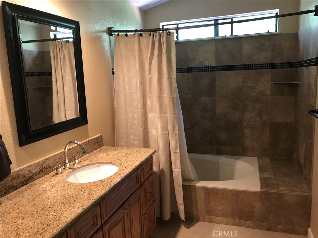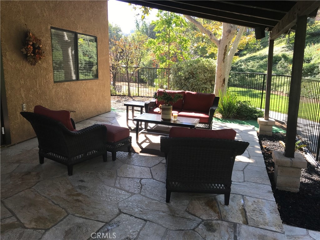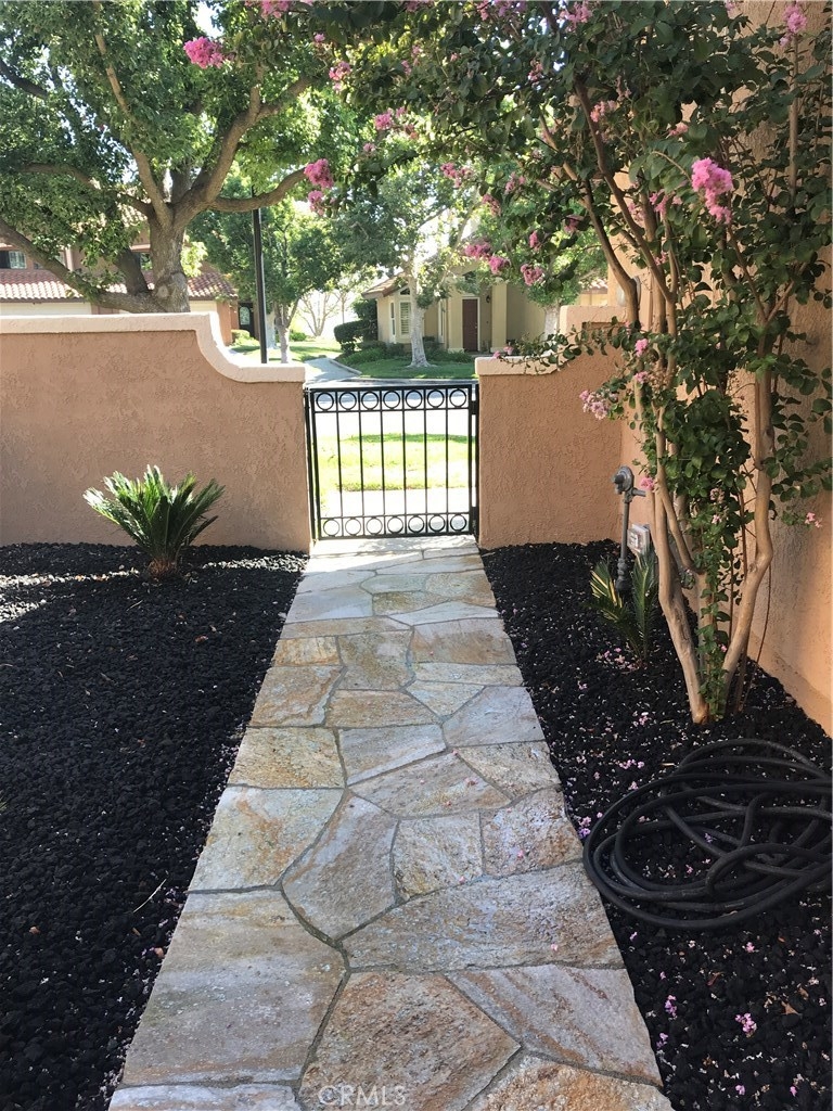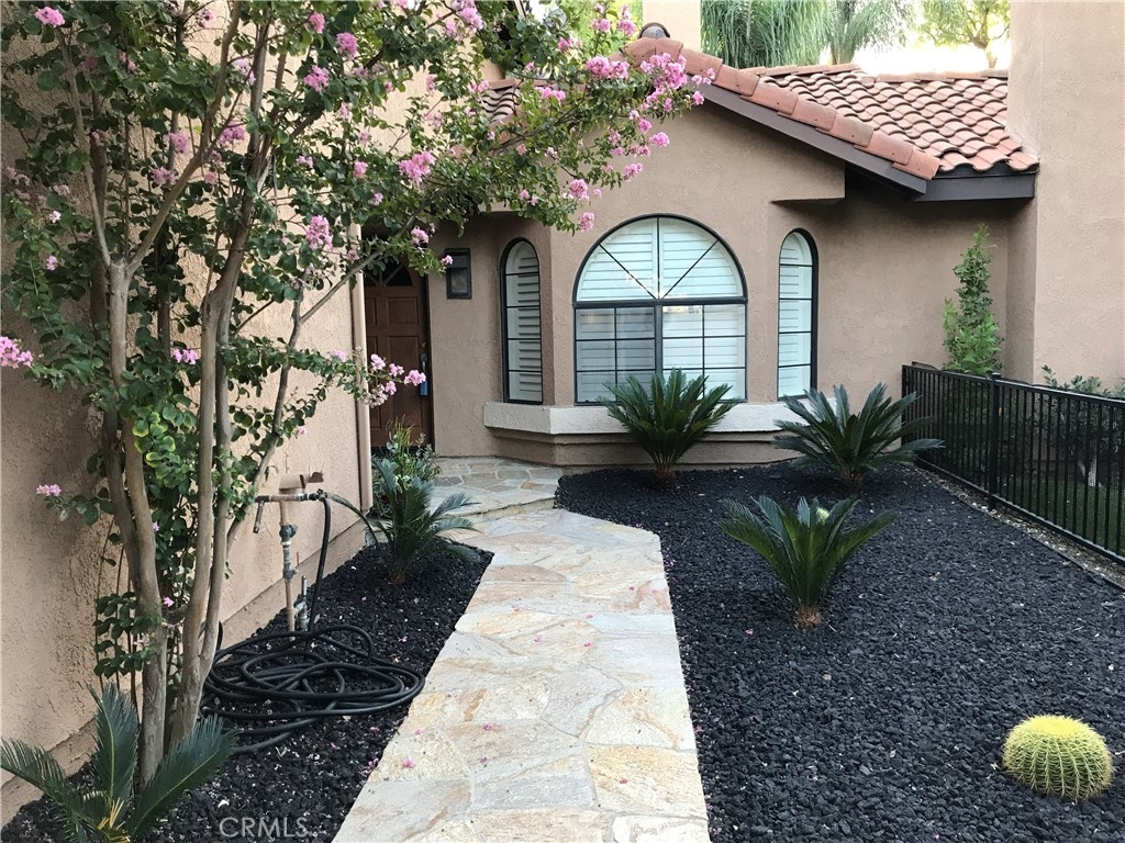 Perfect location!! Gorgeous home in the hills of Anaheim hills. As you walk through the gate into the court yard there is a beautiful new flagstone walkway along with new landscaping. The spacious living room has a large cozy fire place. Elegant dining room with beautiful wood floors and French doors that go out to the back patio. There are shutters on the front window and a built in shelf in the living room. The kitchen has Corian counter tops with beautiful upgraded white cabinets and stainless steel sink. Upstairs there are 3 bedrooms with a luxurious master suite and another full hall way bathroom. Plenty of storage space in the closet with mirror doors. The 2 car attached garage has direct access with an epoxy floor and built in steel cabinets,work bench and washer and dryer hook ups. The garage has a very quite high lift door. The large backyard has beautiful and perfect for entertaining and a barbecue. There is a new flagstone patio with a patio cover and a large side yard to enjoy. There is a nest Thermostat and ring doorbell.