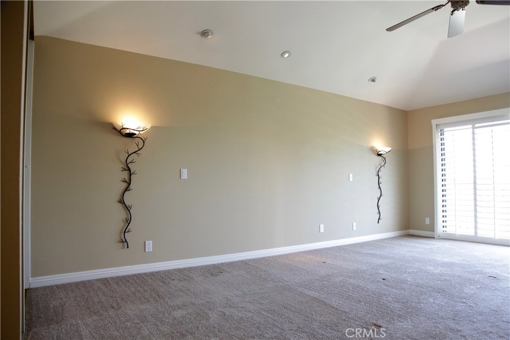 Upgraded and Private - 3 bedroom, 3 bath home in Galerie. Enter through a private gate into a courtyard where the entrance has double doors to this fantastic condo. The entire downstairs has hard flooring including marble and ceramic tile, a fireplace and a gorgeous view. In the kitchen you will find granite countertops, a pantry and a laundry room with washer/dryer hookups. The family room / formal dining area has lots of space for watching TV and entertaining. The informal dining room has a large slider to enjoy the view of the local city lights and mountains or step outside to the back patio to enjoy even more of the view and trees. Upstairs are two secondary bedrooms, a bathroom and a very large master with it's own bathroom and balcony along with extra storage space in the attic. This home is in move-in condition. Close to parks, Anaheim Hills golf course and shopping. This property offers a 2-car garage, community swimming pool/spa and club house.