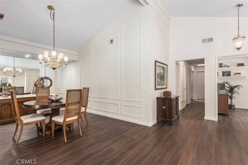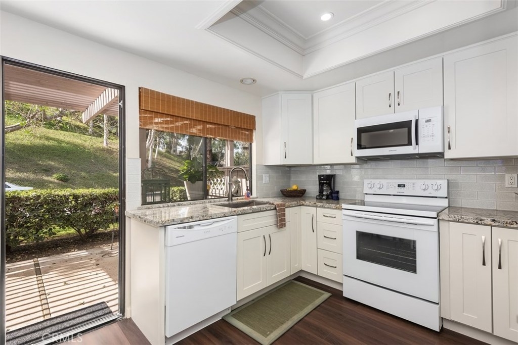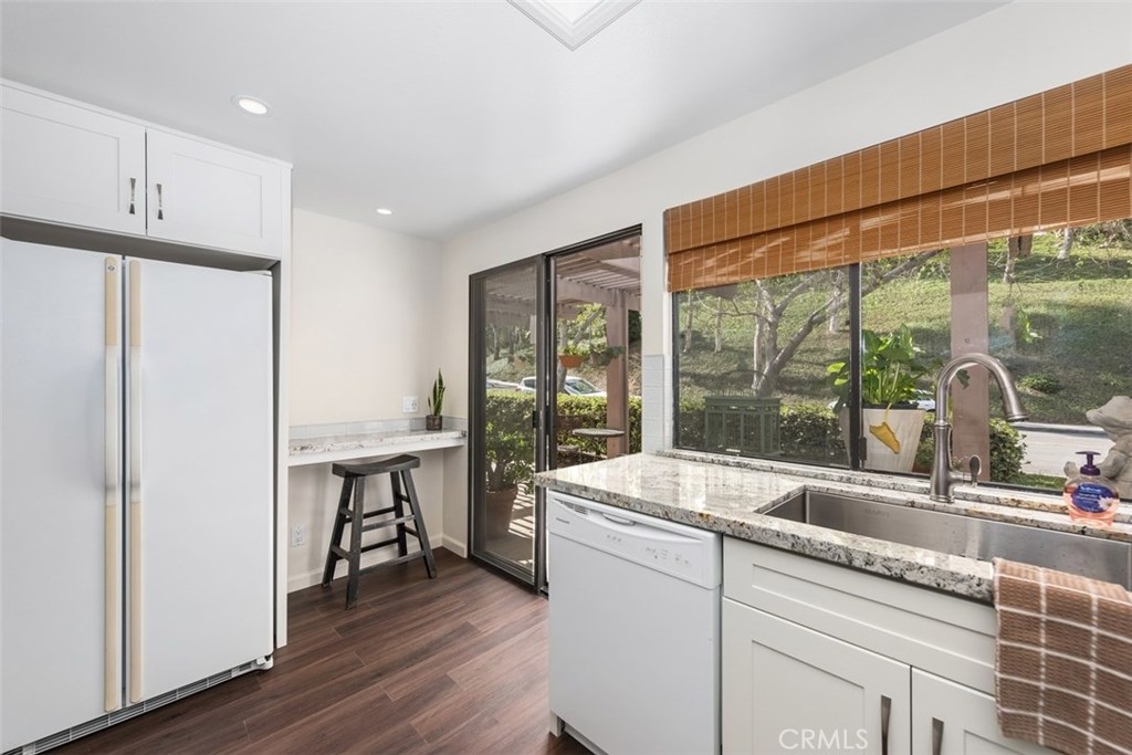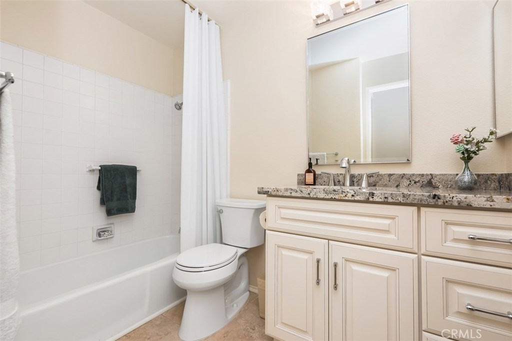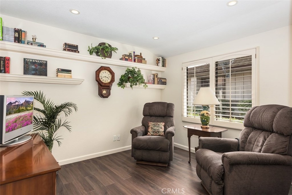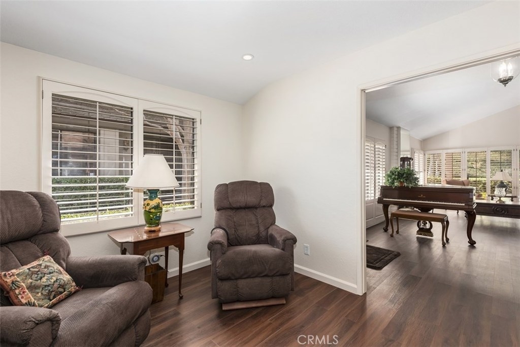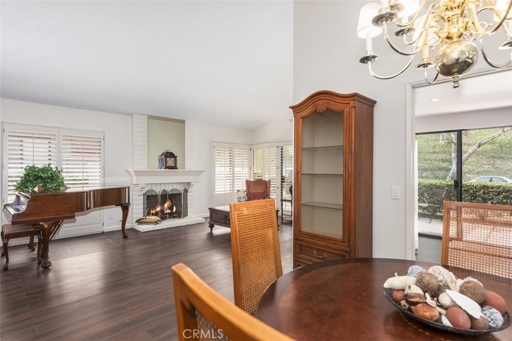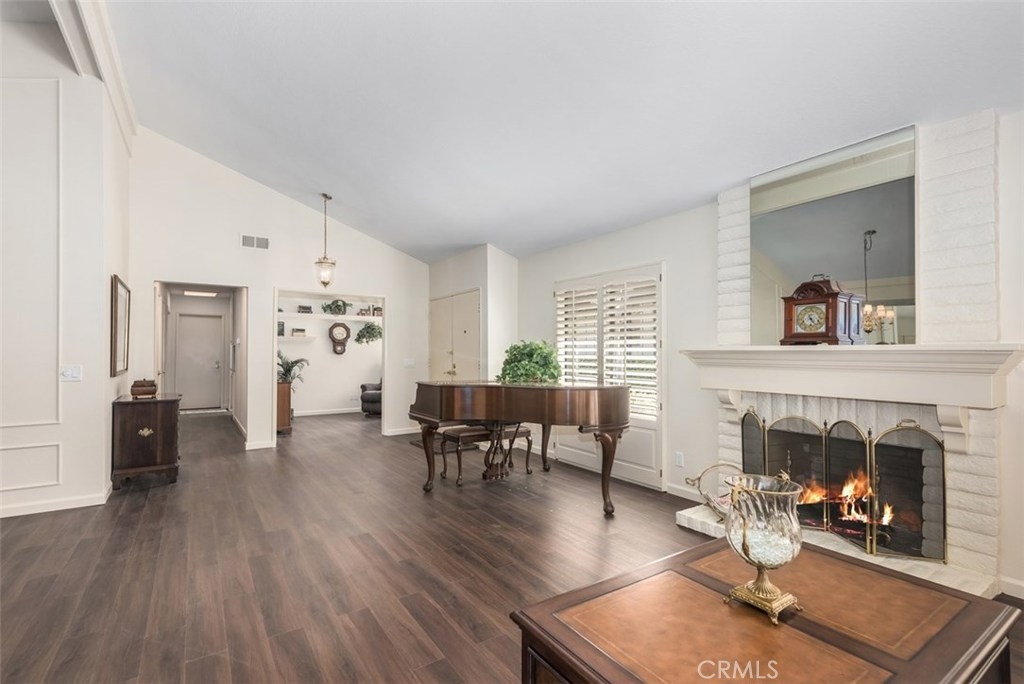 This absolutely pristine, single story home located in the heart of Anaheim Hills in the highly desirable community known as “The Galerie,” has been impressively improved with fresh paint, smooth finish ceilings, new baseboards and stunning water-resistant wood flooring throughout its primary living areas. Encompassing 1,536 square feet, the home is comprised of two bedrooms, two baths, plus a spacious den. Natural sunlight adds to the openness the home’s inviting and functional floor plan which includes a large living room with vaulted ceiling, gas fireplace, custom shutters and view toward a picturesque hillside, plus generous dining room with mirrored wall. A fabulous, remodeled U- shape kitchen featuring soft-close doors; roll-out drawers, granite countertops, a tiled backsplash, newer range; microwave, plus breakfast bar opens to an expansive covered patio overlooking a parklike setting of mature trees. The master suite with its own private patio has vaulted ceiling, two generous closets & a private bathroom featuring a large shower area with built-in seat; three showerheads, plus dual sink cabinetry with granite countertop; the second bedrooms has a large closet. Attached direct access 2 car garage with new storage cabinets, a new hot water heater & laundry hook-ups. Association amenities include a pool, spa and clubhouse.
