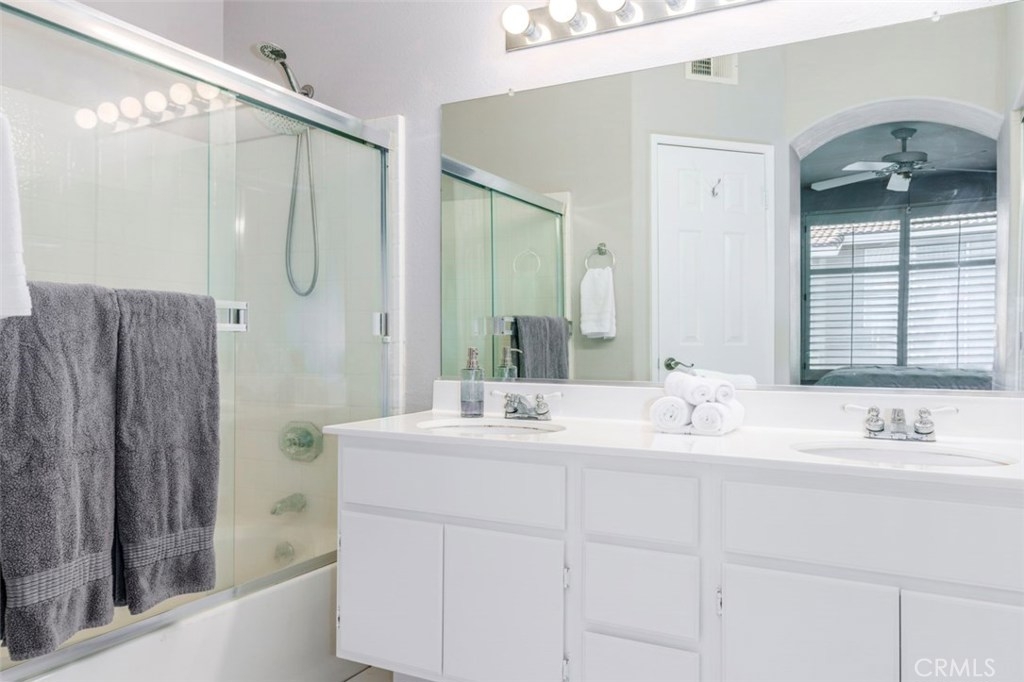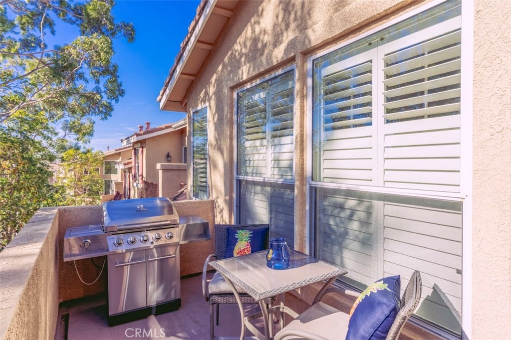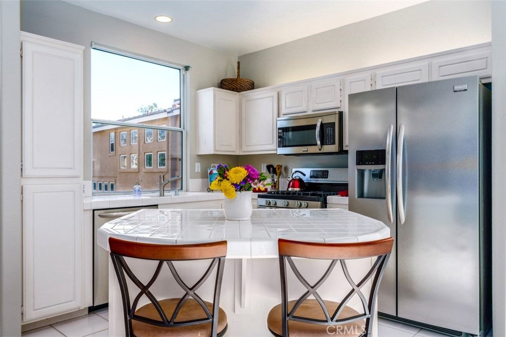 This beautiful 2 bedroom/2 bathroom condo is nestled in the highly desirable community of Monaco in gorgeous Anaheim Hills. Tucked away in an end unit private location with no neighbors above or below, this light and bright home offers spacious, open floorplan living with vaulted ceilings and oversized windows. The kitchen features newer stainless steel appliances as well as a large island perfect for serving and dining. A balcony off the main living area creates a resort like feel and offers a lovely view of the community. A cozy fireplace in the living room can be enjoyed from the kitchen and dining area as well. In the master bathroom you’ll find a roomy walk-in closet with cedar lining and a dual sink vanity. The second bedroom is completely private and the second bathroom is a full bathroom with shower and tub. A freshly painted interior, recessed lighting and plantation shutters only add to the appeal of this home. You also have a 2 car (side by side) garage as well as direct access to the condo from the garage. The Monaco community offers a resort style swimming pool, multiple spas, tennis courts, a clubhouse, a gym and BBQs. Conveniently located close to top rated schools, including Canyon Rim Elementary and El Rancho Charter, shopping, dining and the 241 toll road and 91 freeway. This is a must see!
