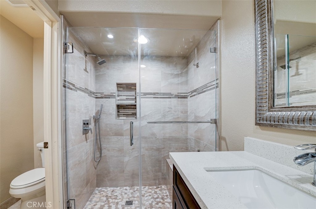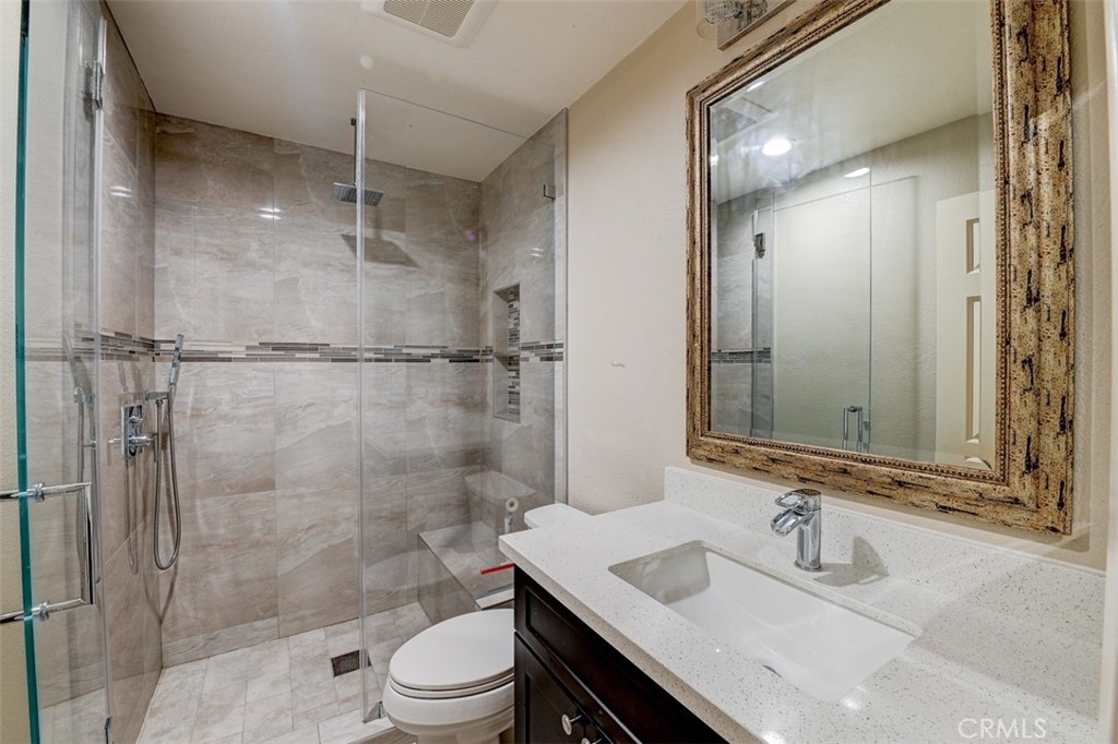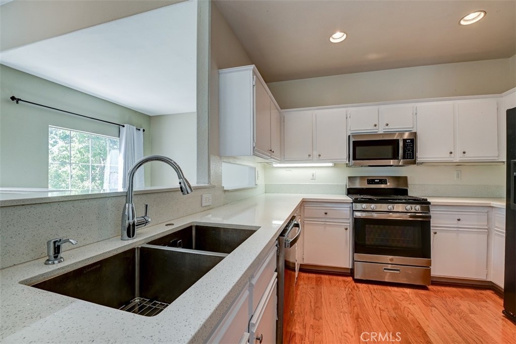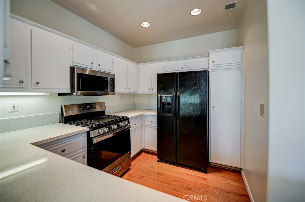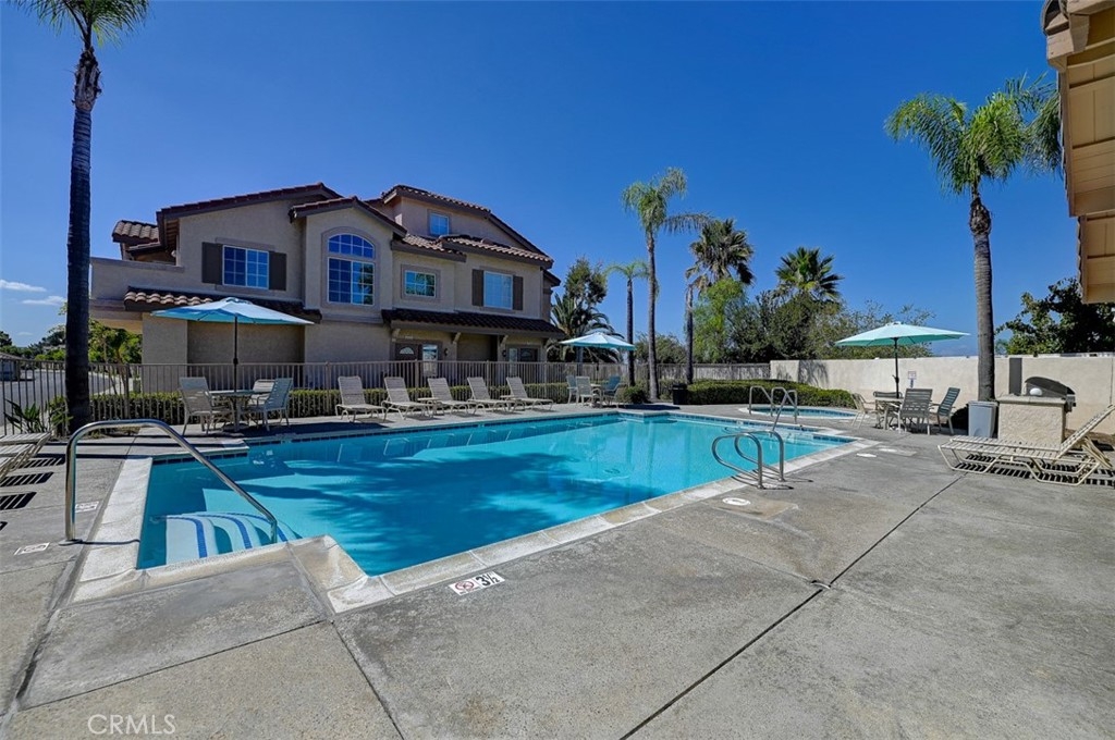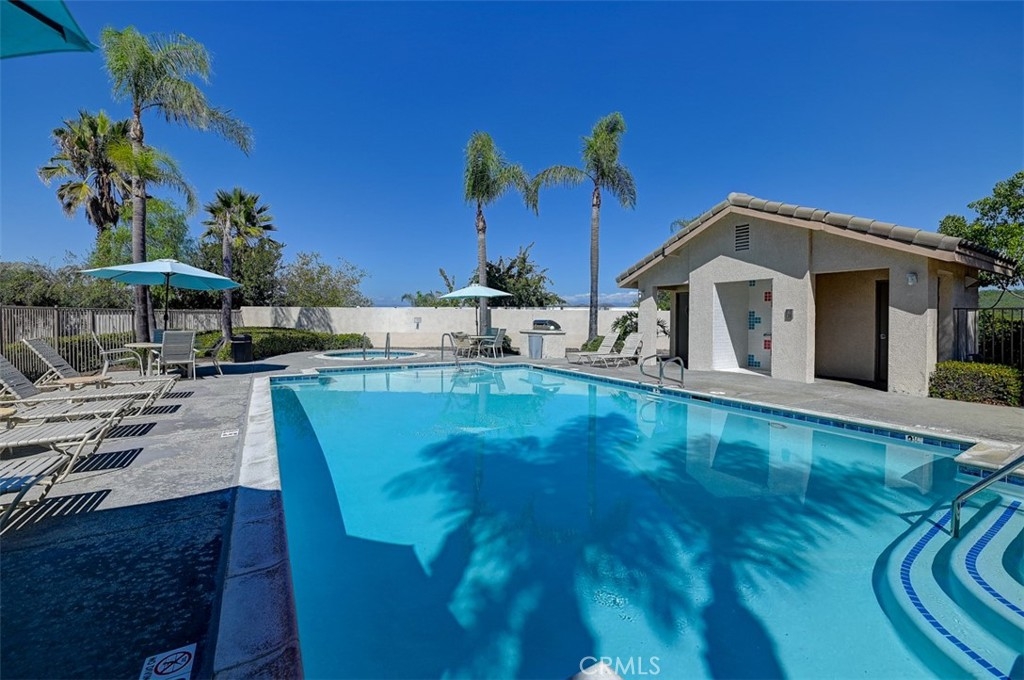PEARLED TO PERFECTION AND BEAUTIFUL! Luxury living and tranquility awaits you at the gated community - View pointe North of Anaheim Hills. Very RARE sought after 2 BEDROOM 2 BATHROOM ( ONE BEDROOM IS A MASTER SUITE WITH PRIVATE BATHROOM - JACK AND JILLL SINKS AND DUAL CLOSETS). This is an UPGRADED END UNIT overlooking a dazzling pool and greenbelt from your private balcony. This home has a bright and open floorplan, lots of natural lighting, is two stories and features 3 PARKING SPACES ( A DIRECT ACCESS 1 CAR DIRECT ACCESS GARAGE, A DRIVEWAY, AND AN ADDTIONAL COVERED AND ASSIGNED PARKING SPACE ). Inside the unit you will find: VAULTED HIGH CELINGS, RECESSED LIGHTING, A LAVISHLY UPGRADED KITCHEN WITH QUARTZ COUNTERTOPS, WOOD FLOORING , PARTIAL CARPETING, PLANTATION SHUTTERS, A FIREPLACE IN THE LIVING ROOM, A/C AND HEATING, INSIDE WASHER AND DRYER HOOKUPS, TWO BEDROOMS, TWO BATHROOMS. . HOA provides a lush greenbelt throughout, with 2 community pools, a place for family barbeques, relaxing resort style living indeed! Refrigerator (used) is included in the sale of the home with no warranties. Disclosure: Some photos have been virtually staged. Seller makes not warranties expressed or implied. Buyer to verify all information, square footage, permits , room count to buyer's satisfaction.