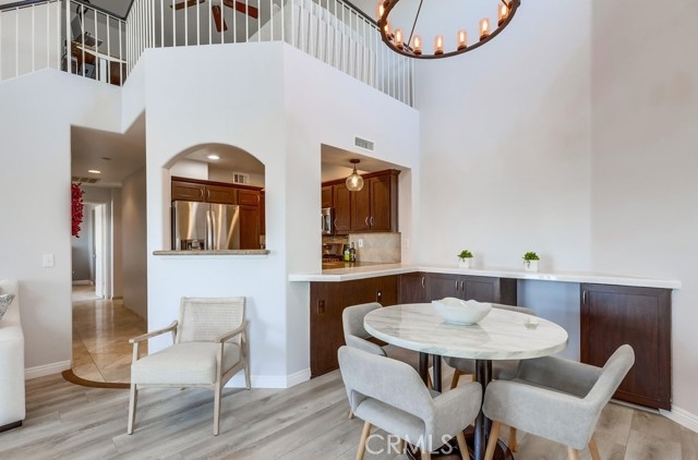 This beautiful top-floor corner unit condo has SPECTACULAR panoramic hillside views from your living spaces and private balconies, especially at sunrise and sunset! With high ceilings and lots of windows there is plenty of sunlight streaming into your home year-round. Upon walking up the stairs either from your front door or your garage, you'll be greeted by the beautiful living space where you'll enjoy a neutral pallet and many updates including newer paint, flooring, baseboards, bathrooms, fireplace facing and mantel. The spacious loft is great for an office or guest room. Gleaming stainless-steel appliances in the kitchen with lots of counter space and cabinetry, separate dining area with a breakfast bar and a buffet counter with cabinets. The primary bedroom has an en-suite updated bathroom, walk-in closet and a private balcony offering more spectacular views. Your second bedroom is roomy with mirrored closet doors and also has spectacular views of the hillsides beyond. Inside laundry connection is on the same level as your living space making it very convenient. Your 2-car garage with cabinets and lot of space for storage. Plus, you have a 2-car driveway that will accommodate additional parking for your guests. Living in this beautiful, Viewpoint North gated community offers great amenities such as swimming pools, spas and clubhouse. Also, there are several greenbelts, lots of trees and guest parking across the street from the property. Shopping and dining options are conveniently nearby, along with great freeway access. FHA and VA approved.
