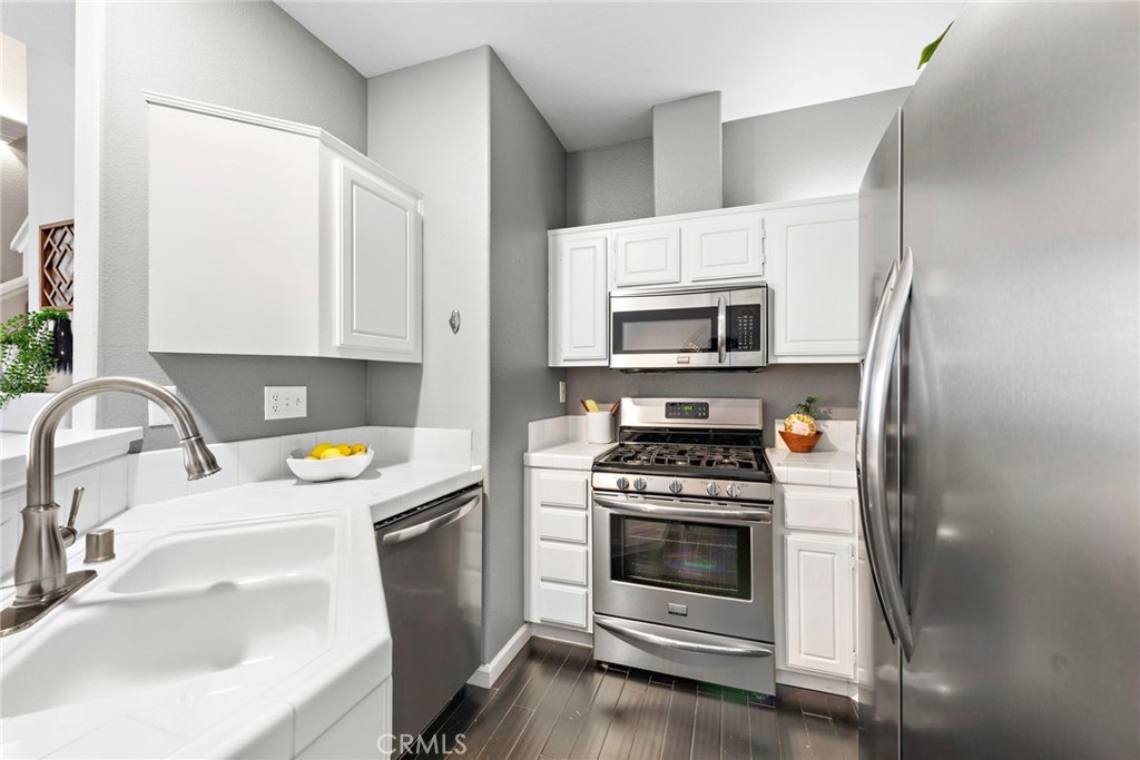Discover modern living in this chic 1-bedroom 2 bath studio condo, complete with a rare 2-car tandem garage for convenient parking and extra storage. Located in a desirable community, this stylish residence features an open-concept design that maximizes space and natural light, creating an airy and inviting atmosphere. This cozy residence features an inviting living area with a beautiful fireplace, perfect for adding warmth and ambiance to your evenings. Your kitchen area is equipped with stainless appliances and plenty of storage space. Step outside to the private outdoor patio, perfect for enjoying peaceful mornings or relaxed evenings under the stars. Surrounded by the beauty of Anaheim Hills, you'll have easy access to local hiking trails, parks, and nearby dining and shopping. The serene master retreat provides a cozy, private sanctuary, while the thoughtfully designed bathroom boasts contemporary fixtures and luxurious finishes. This studio is not just a home but a lifestyle choice that caters to the discerning individual. Don't miss this rare opportunity to experience the charm and sophistication of Anaheim Hills living at its finest.
