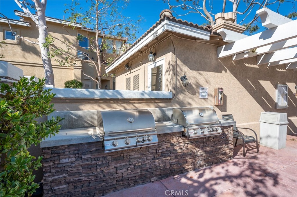 Peace and serenity awaits in this lovely one bedroom unit in the Monaco community. The light filled main level features sweeping floor to ceiling windows including a sliding glass door with access to a private patio just off the family room. Step into the kitchen with fresh white cabinetry, tiled countertops, pantry and eat in kitchen dining. Head upstairs to the spacious loft style master bedroom with mirrored closet with custom built-ins and built-in bookshelves to store all your essentials. The bathroom with single upgraded vanity and shower tub is conveniently located off the stairs between both living areas. Single door 2 car tandem attached garage allows for additional storage and secure access. Complete with newer HVAC system and water heater. Resort style neighborhood amenities include a community pool, three spas, a clubhouse, fitness room and tennis courts. Conveniently located near local shops, restaurants, parks, award winning schools and the 91 and 241 freeway.