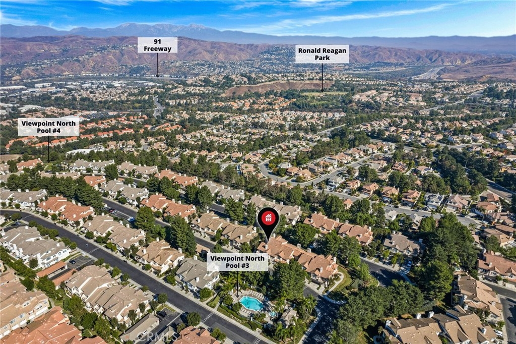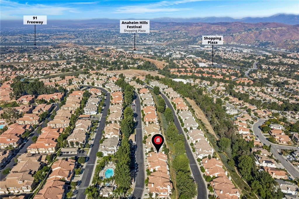 Welcome to this charming two-bedroom plus loft, two-bathroom home in the gated community of Viewpoint North in beautiful Anaheim Hills! Imagine waking up every morning to panoramic views that stretch across rolling hills, mountains, and the valley—this isn’t just a home; it’s a lifestyle choice. This end-unit retreat features an open floor plan, a cozy living room with a fireplace and mantel, a spacious kitchen with everything you need, and a formal dining room perfect for entertaining. You'll also enjoy high vaulted ceilings, an inside laundry area, multiple storage areas, an oversized two-car garage with direct access, and a walk-in closet in the primary suite. Two inviting patios offer the perfect spots to unwind and take in the breathtaking surroundings. Conveniently located just steps from one of the community’s pools and spas, you’ll also have easy access to shopping, dining, the Anaheim Hills Country Club, and the 91 freeway. Nature lovers will feel right at home here, with up to 15 hiking trails within a four-mile radius, offering endless hiking, biking, and birdwatching opportunities. This peaceful, tree-lined community serves as a serene retreat from the hustle of everyday life, all while being in a top-ranked school area. Priced to sell—come check it out and see the lifestyle waiting for you!
