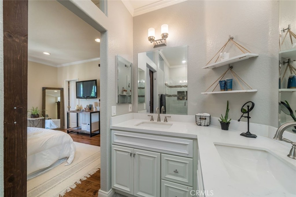 O. M. G.....This is it!!! Located in the prestigious gated community of Summit Renaissance, in the beautiful city of Anaheim Hills. Featuring 2 bedrooms & 2 1/2 baths. Award winning schools, surrounded by lush landscaping, shopping centers, dining & entertainment, parks & golf courses. Close to 91 & 241 fwys. This masterpiece of a home offers very spacious open floor plan living with elegant finishes and touches throughout! From the moment you walk in you simply feel you're home... Fully upgraded kitchen with new cabinetry & large island with quartz countertops, brand new white back splash, stainless steel appliances including oven range hood and farmhouse sink with new faucet. New recessed lighting, new flooring, new paint, crown molding and dimmable ceiling lights. Unique reclaimed wood shelves in dining room. Smart Nest doorbell with Nest thermostat. Upgraded master closet with shelvings. New tile, sinks and tile spandex stand up shower with tile in master bathroom. Beautiful farm door going into master bathroom, new sink and tile flooring in guest bedroom spacious closet and new faucets and shower head. Enjoy the pool, spa and recreation area with plenty of space for your guests. Must see to appreciate all the fine details!!