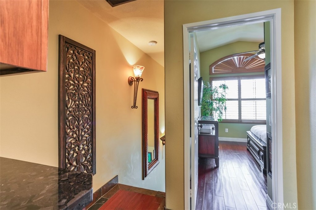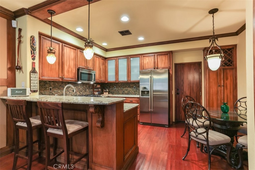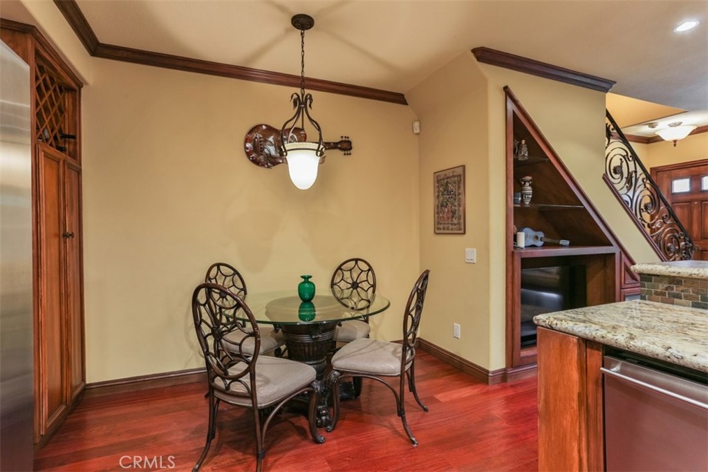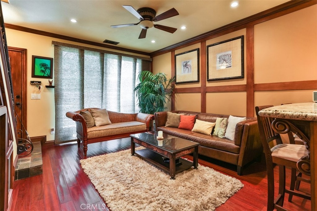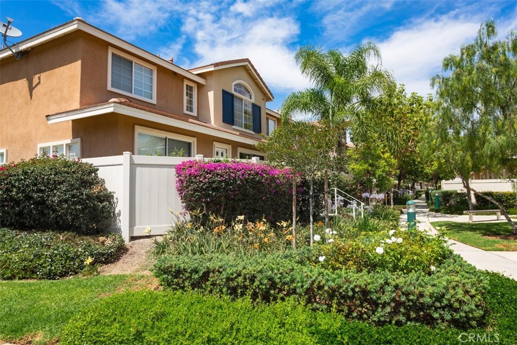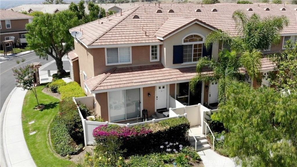 MUST SEE VIDEO TOUR! Arguably one of the finest townhomes in Summit Park! This pristine home was professionally designed by an interior decorator and no expense was spared! From hand-scraped hardwood floors to hand-forged wrought iron stair railing to plantation shutters. As you enter into the private front courtyard that has artificial grass and concrete, you will find a nice area to BBQ and relax under the palm trees. Then prepare to be wowed when you open the front door and see the inviting great room with extensive wood finishes like crown molding, entertainment niche, wall accents and high quality light fixtures throughout. The kitchen features granite countertops with a bar area, custom backsplash, upgraded stainless steel appliances and an adjoining dining area. As you go upstairs you will find the master suite and a large secondary bedroom with vaulted ceilings. Both bathrooms are highly upgraded with stone floors and showers, granite countertops and high-end fixtures. The laundry is conveniently located upstairs in the hallway. Direct access from the single car garage into the unit. There is an assigned covered carport for a second vehicle. Just steps from Ronald Reagan Park and situated close to the 91 Freeway, 241 Toll Road, and Savi Ranch Shopping. Association amenities include the newly updated pool & spa, tot lot and gym. Located within the boundaries of highly rated schools: Running Springs Elementary, El Rancho Middle and Canyon High. LOW HOA & NO MELLO ROOS!