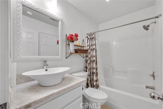 Absolutely stunning turnkey two-story townhome located in the prestigious Summit Park community of Anaheim Hills! This beautifully maintained home features 2 spacious bedrooms and 2 full bathrooms, along with an attached one-car garage and an assigned carport . Note: Client updated the property the last few years with updated new kitchen counter top, wood flooring, dishwasher, washer and dryer, updated toilets and ceiling/lighting. The most recent update was the water heater last year. The main floor boasts an inviting living space with an abundance of natural light and a gorgeous kitchen with modern cabinetry. The cozy living room opens up to a private patio through a sliding glass door. Perfect for entertaining or relaxing outdoors. Upstairs, you'll find two generously sized bedrooms and vaulted ceilings that enhance the sense of space and comfort. The home is immaculately clean and move-in ready.