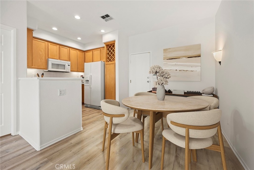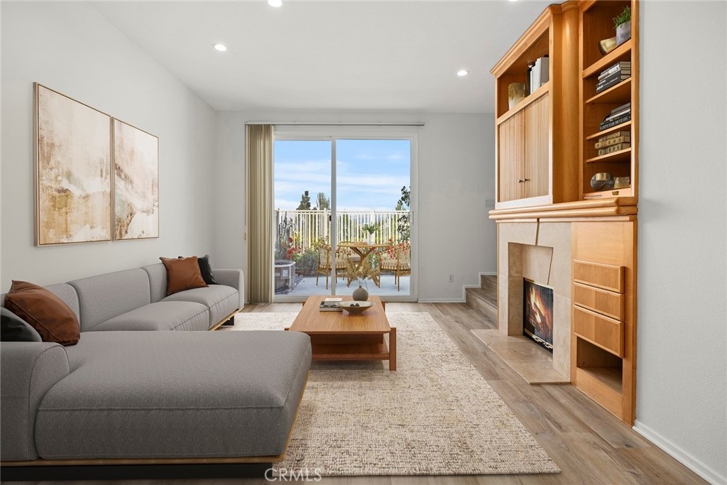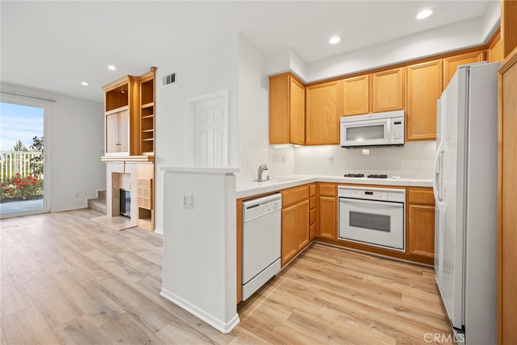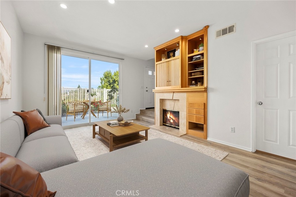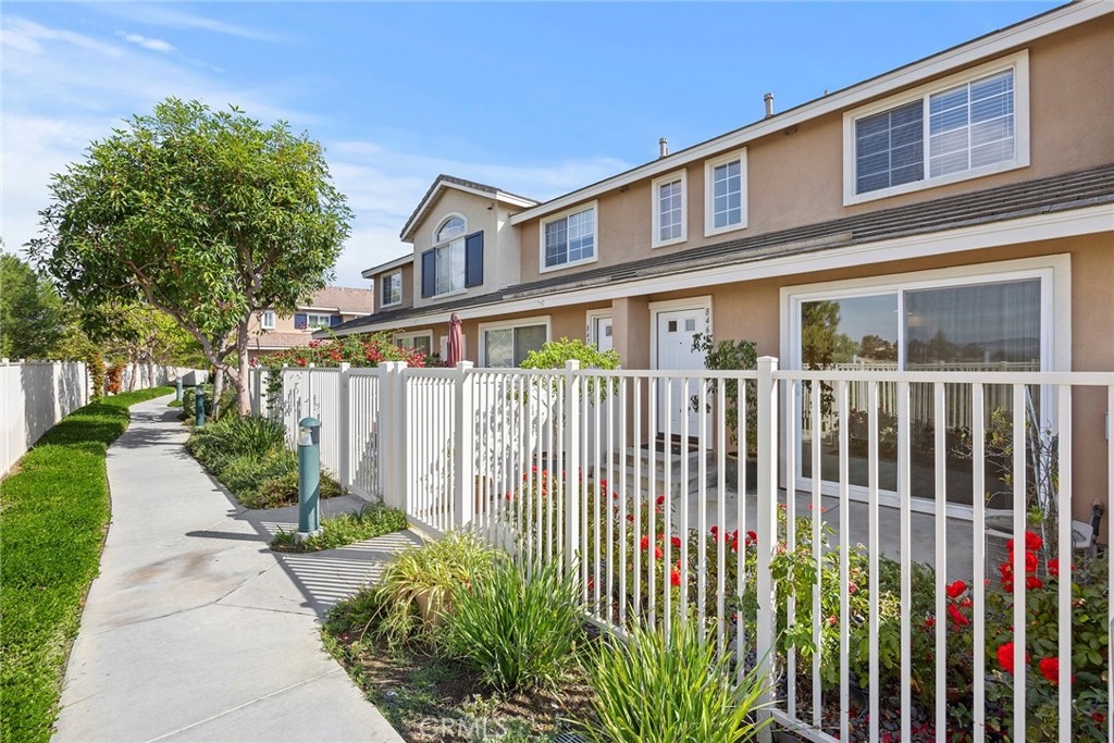 VIEWS, VIEWS, VIEWS! This ideally situated Summit Park is perfectly perched to offer panoramic views from your own intimate courtyard. Enter through your private gated entry and take a moment to savor the inviting open air setting and pleasant park and city light views. No neighbor in front of you further enhances the wide open atmosphere this home offers. Step inside and take notice of the freshly painted walls and brand new wood-look vinyl flooring which creates a warm and inviting atmosphere. Entertaining is a breeze when you open the generous slider, allowing the fresh breeze indoors, expanding the versatility and usability of this easy flowing floor plan. The focal point of the generous living room is the welcoming fireplace that is surrounded by the custom media center finished in light maple wood tones. The efficient kitchen offers bright white countertops, white appliances and attractive warmly stained cabinetry with plentiful storage including a built-in wine rack. A pretty powder room and access to the two-car garage finishes the lower level. Upstairs leads to the TWO primary suites, each with their own sprawling vanity, a tub/shower or shower combination, and either generous slider or walk-in closets. The front primary will enjoy the blanket city lights views! Generous linen storage and laundry (includes stackable washer/dryer unit) are conveniently located upstairs as well. The home's desirable HOA amenities include a community clubhouse, sparkling pool and spa for relaxation, and a tot lot for children to enjoy. The community itself exudes a serene ambiance with its meandering pathways for walks, boasting a short stroll to Ronald Reagan park, hiking and biking trails and some of the best schools around!