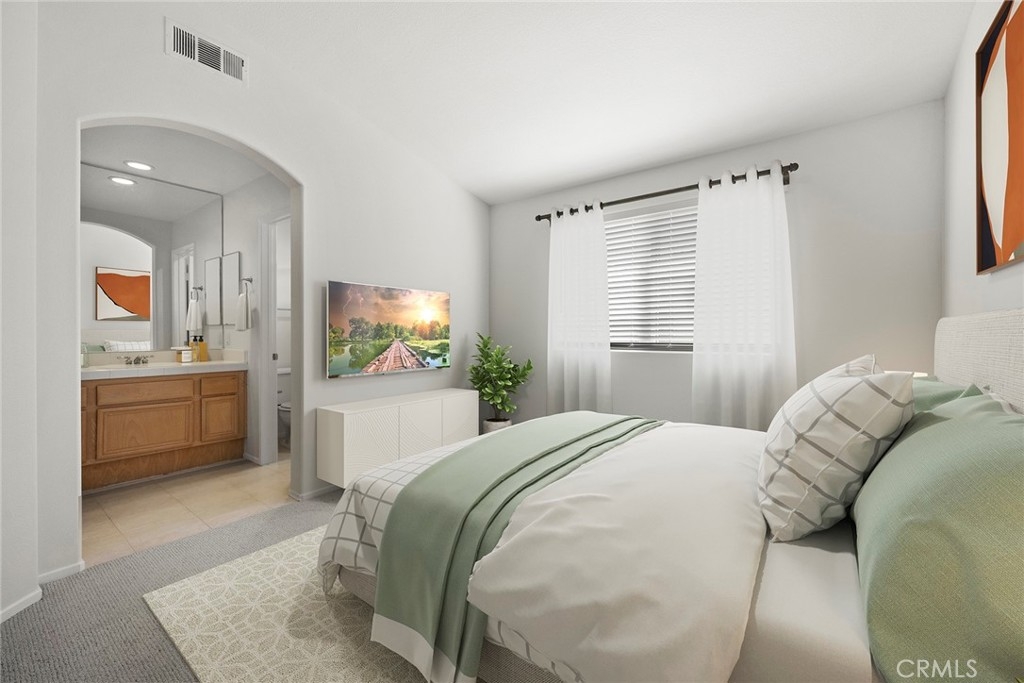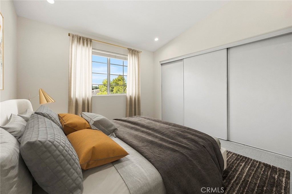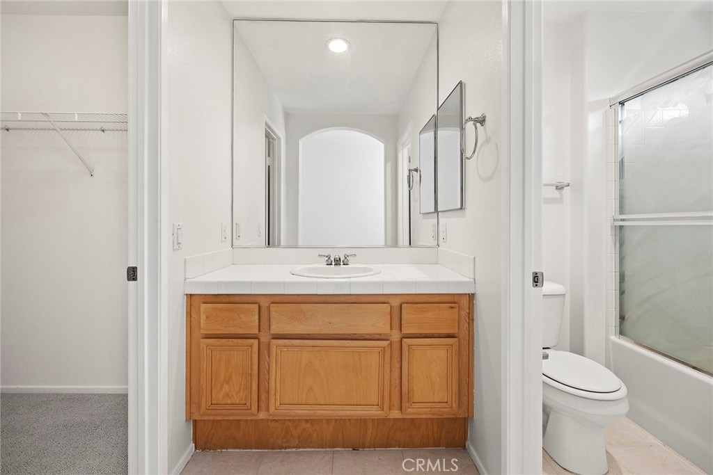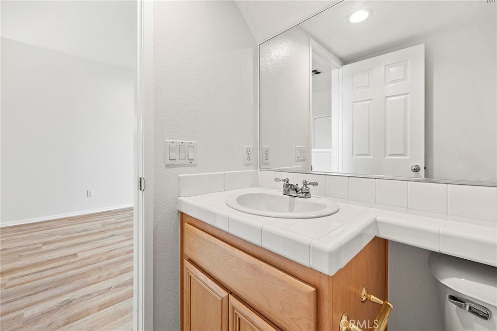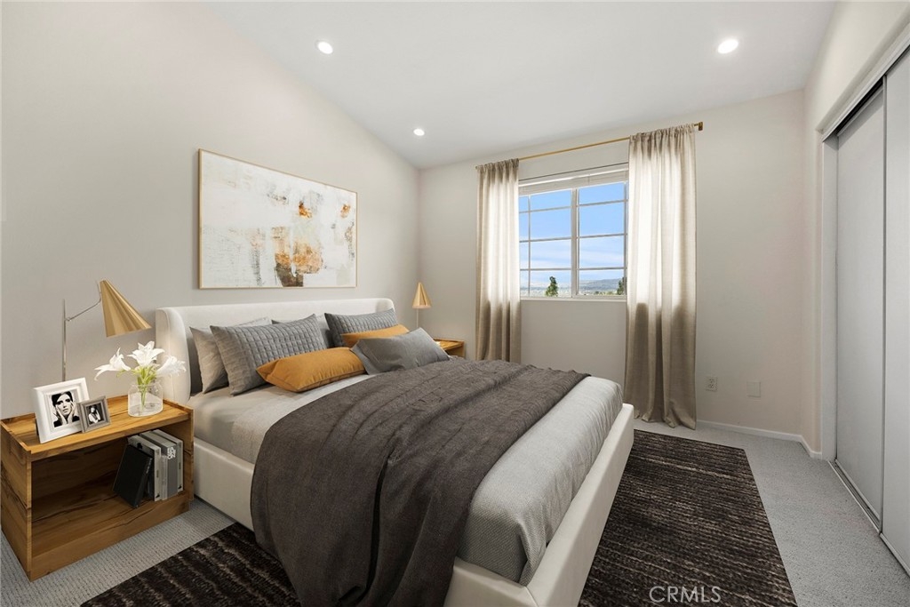 VIEWS, VIEWS, VIEWS! This ideally situated Summit Park is perfectly perched to offer panoramic views from your own intimate courtyard. Enter through your private gated entry and take a moment to savor the inviting open air setting and pleasant park and city light views. No neighbor in front of you further enhances the wide open atmosphere this home offers. Step inside and take notice of the freshly painted walls and brand new wood-look vinyl flooring which creates a warm and inviting atmosphere. Entertaining is a breeze when you open the generous slider, allowing the fresh breeze indoors, expanding the versatility and usability of this easy flowing floor plan. The focal point of the generous living room is the welcoming fireplace that is surrounded by the custom media center finished in light maple wood tones. The efficient kitchen offers bright white countertops, white appliances and attractive warmly stained cabinetry with plentiful storage including a built-in wine rack. A pretty powder room and access to the two-car garage finishes the lower level. Upstairs leads to the TWO primary suites, each with their own sprawling vanity, a tub/shower or shower combination, and either generous slider or walk-in closets. The front primary will enjoy the blanket city lights views! Generous linen storage and laundry (includes stackable washer/dryer unit) are conveniently located upstairs as well. The home's desirable HOA amenities include a community clubhouse, sparkling pool and spa for relaxation, and a tot lot for children to enjoy. The community itself exudes a serene ambiance with its meandering pathways for walks, boasting a short stroll to Ronald Reagan park, hiking and biking trails and some of the best schools around!