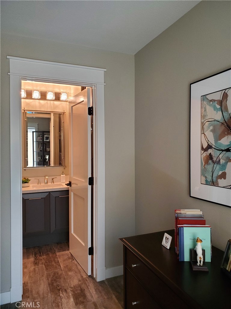*****ACCEPTING BACK UP OFFERS***** NO EXPENSES SPARED IN THIS REMODEL! PERFECTIONIST'S DREAM! From the moment you enter this desirable end unit, you will marvel at the countless upgrades from polished concrete floors to solid wood doors with new hardware, 5 1/2" wood baseboards and casings, recessed lighting, designer window coverings, custom wood framed vinyl windows, new grey cabinets with quartz counter tops in kitchen/powder room. Large sliding door opens to one of the largest private, beautifully landscaped backyards in this development. Bath sinks, faucets and toilets are new. White quartz countertops complement the modern grey shaker cabinets throughout the home. Master bedroom has high vaulted ceiling and an ensuite bathroom includes large custom walk-in shower and dual sink vanity. Second bedroom also includes ensuite bath. Whole house fan, Tankless water heater and soft water system included. Tot lot, pool and rec room included. Located in the Summit Court community, surrounded by rolling hills with easy access hiking and mountain biking trails or walk to Ronald Reagan Park, which includes softball fields, basketball courts and a playground. This development is near award winning schools – Running Springs Elementary, El Rancho Charter Middle School, and the newly renovated Canyon High School. This home is a must-see to appreciate. Don't delay or you'll miss a once in a lifetime opportunity.