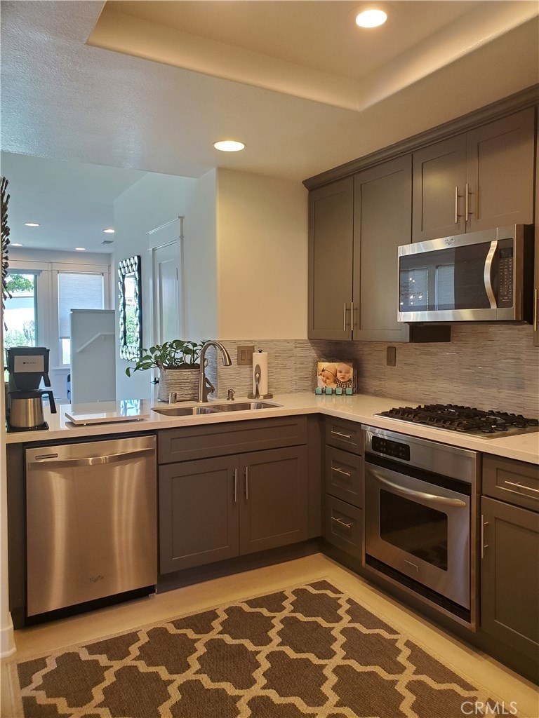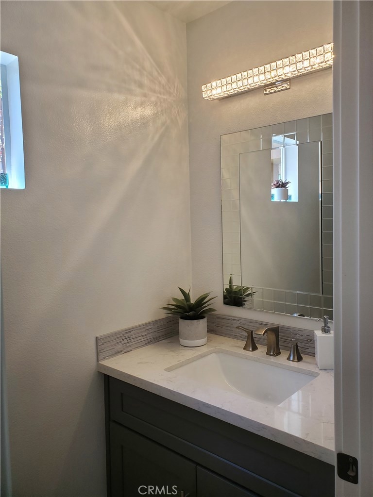 *****ACCEPTING BACK UP OFFERS***** NO EXPENSES SPARED IN THIS REMODEL! PERFECTIONIST'S DREAM! From the moment you enter this desirable end unit, you will marvel at the countless upgrades from polished concrete floors to solid wood doors with new hardware, 5 1/2" wood baseboards and casings, recessed lighting, designer window coverings, custom wood framed vinyl windows, new grey cabinets with quartz counter tops in kitchen/powder room. Large sliding door opens to one of the largest private, beautifully landscaped backyards in this development. Bath sinks, faucets and toilets are new. White quartz countertops complement the modern grey shaker cabinets throughout the home. Master bedroom has high vaulted ceiling and an ensuite bathroom includes large custom walk-in shower and dual sink vanity. Second bedroom also includes ensuite bath. Whole house fan, Tankless water heater and soft water system included. Tot lot, pool and rec room included. Located in the Summit Court community, surrounded by rolling hills with easy access hiking and mountain biking trails or walk to Ronald Reagan Park, which includes softball fields, basketball courts and a playground. This development is near award winning schools – Running Springs Elementary, El Rancho Charter Middle School, and the newly renovated Canyon High School. This home is a must-see to appreciate. Don't delay or you'll miss a once in a lifetime opportunity.