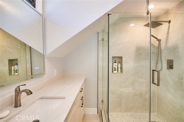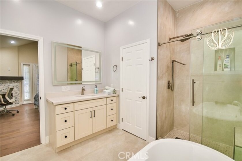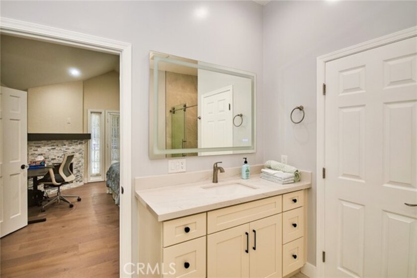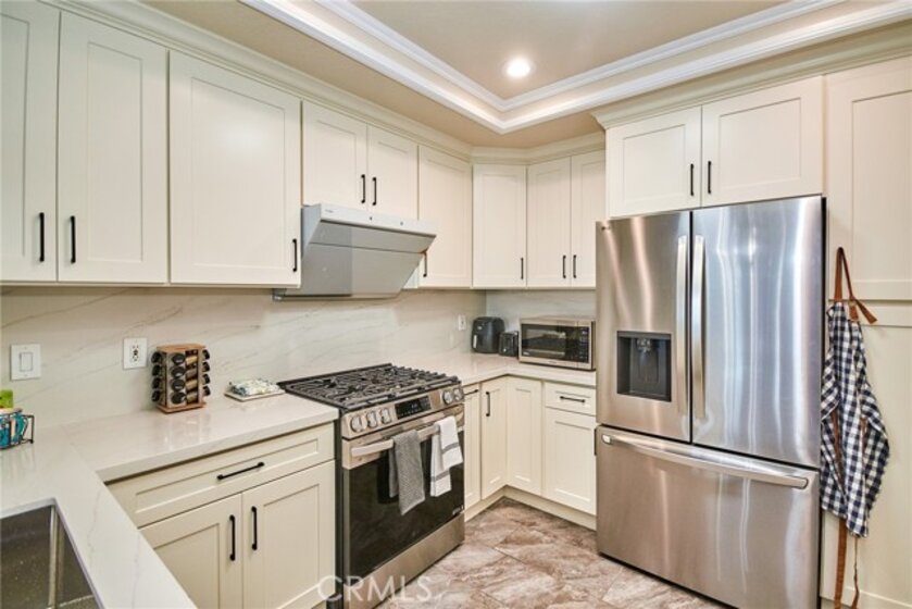 Brand-New Renovation Inside and Out – Stunning Views Await! Welcome to 950 Rim Crest, a beautifully renovated two-level condo tucked into the serene, rolling hills of Anaheim’s sought-after Rim Crest Villas. Boasting panoramic VIEW-VIEW-VIEWS, this 2-bedroom, 2.5-bathroom gem offers a perfect blend of modern luxury and peaceful, suburban living—just minutes from everything you need. From the moment you enter on the garage level, you’ll notice the thoughtful layout designed for both comfort and functionality. A convenient half bath sits just off the entry, while a few steps down lead you into the main living area, where soaring ceilings and abundant natural light create a warm and open atmosphere. The living room features a cozy fireplace and flows seamlessly into the dining area, both with French doors that open to a private backyard oasis—ideal for indoor-outdoor living, entertaining, or simply enjoying the tranquility of nature. The brand-new kitchen is a chef’s dream, offering sleek quartz countertops, modern cabinetry, double ovens, and ample storage—perfect for gatherings and everyday meals alike. Retreat to the luxurious master suite, complete with a second fireplace, private balcony, and a spa-inspired bathroom with sinks, soaking tub, and separate shower. The second bedroom is equally impressive, offering a walk-in closet, and its own sun-drenched balcony—a perfect spot to savor the California sunshine. Outside, the low-maintenance backyard features AstroTurf and mature trees for year-round enjoyment and shade. Just steps from your door, you’ll find direct access to the scenic 2.5-mile trail around Walnut Canyon Reservoir, with connections to the Oak Canyon Nature Center and miles of hiking and biking trails. Community Amenities: Sparkling pool & spa Cedar sauna HOA-provided exterior maintenance Prime Location: Walk to Canyon Rim Elementary School & local park Quick access to 91 & 55 Freeways, 241 Toll Road Close to Savi Ranch, Yorba Regional Park, shopping, dining & more Don’t miss this rare opportunity to own a completely updated, move-in-ready home in one of Anaheim Hills' most peaceful and scenic communities.